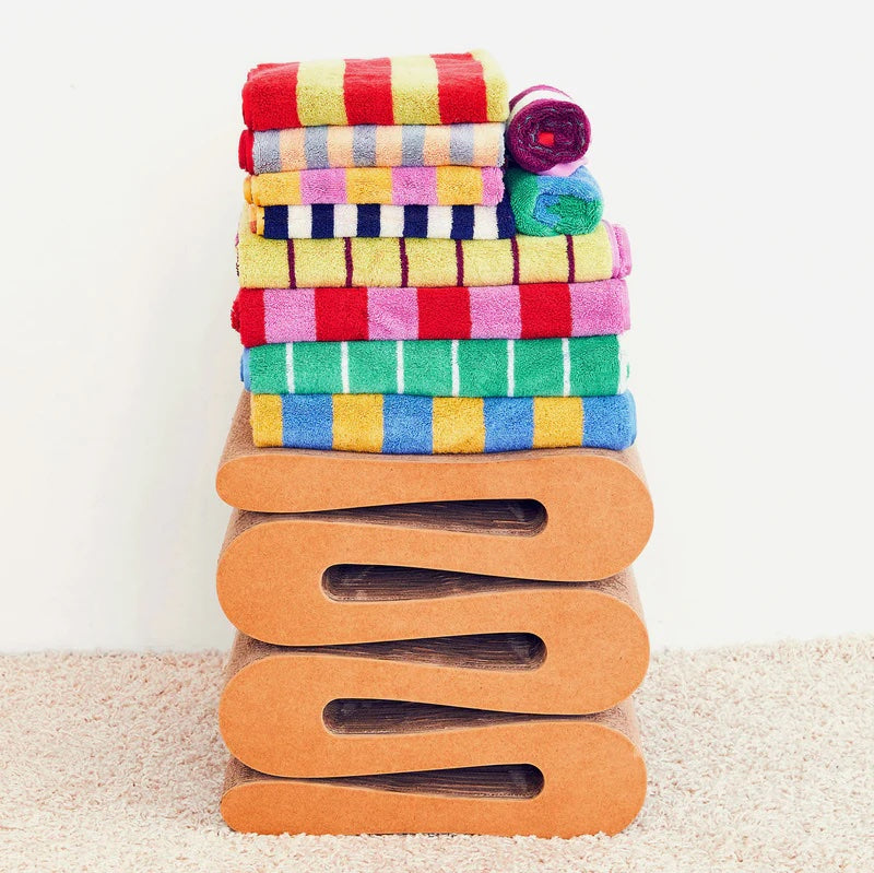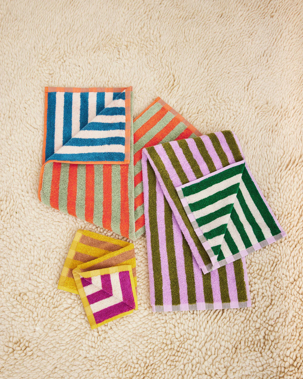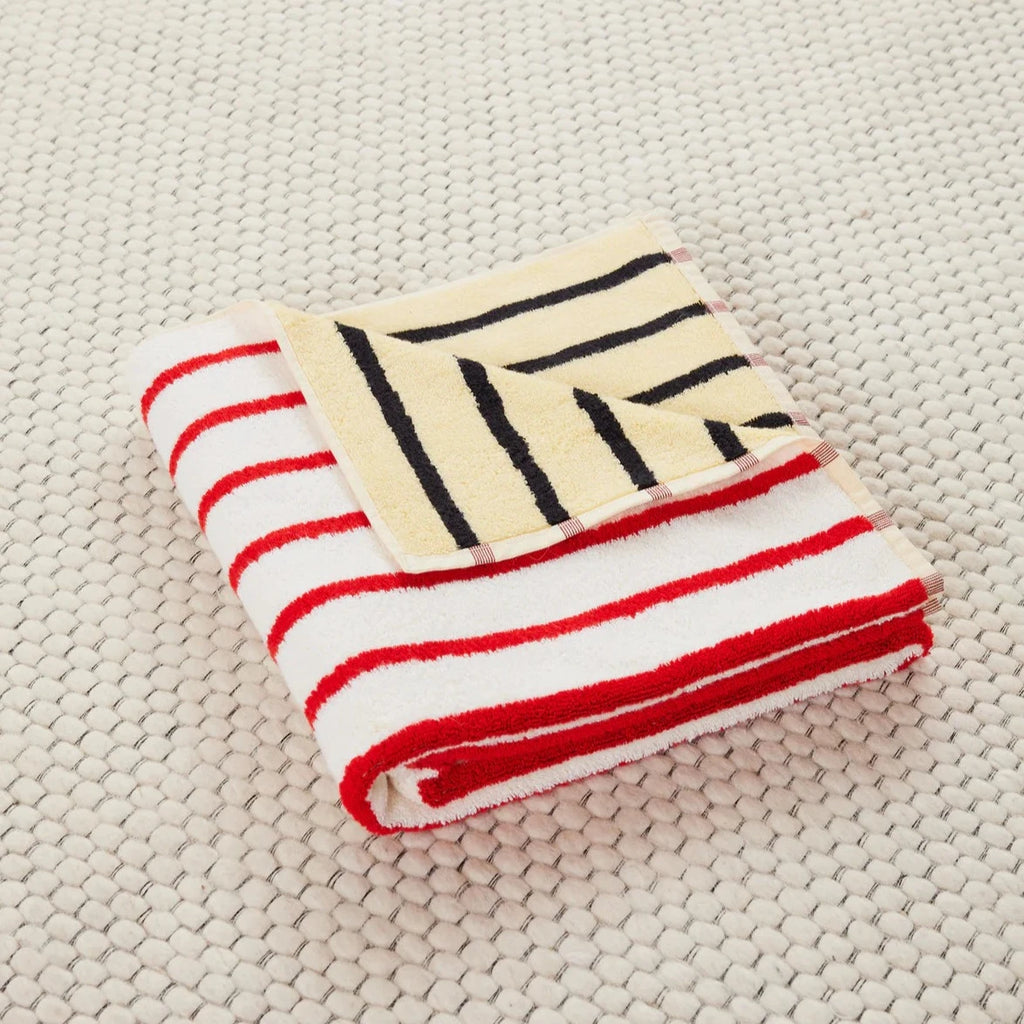 Stucco: Yellow and black, red and white, this striped towel will make you feel just right!