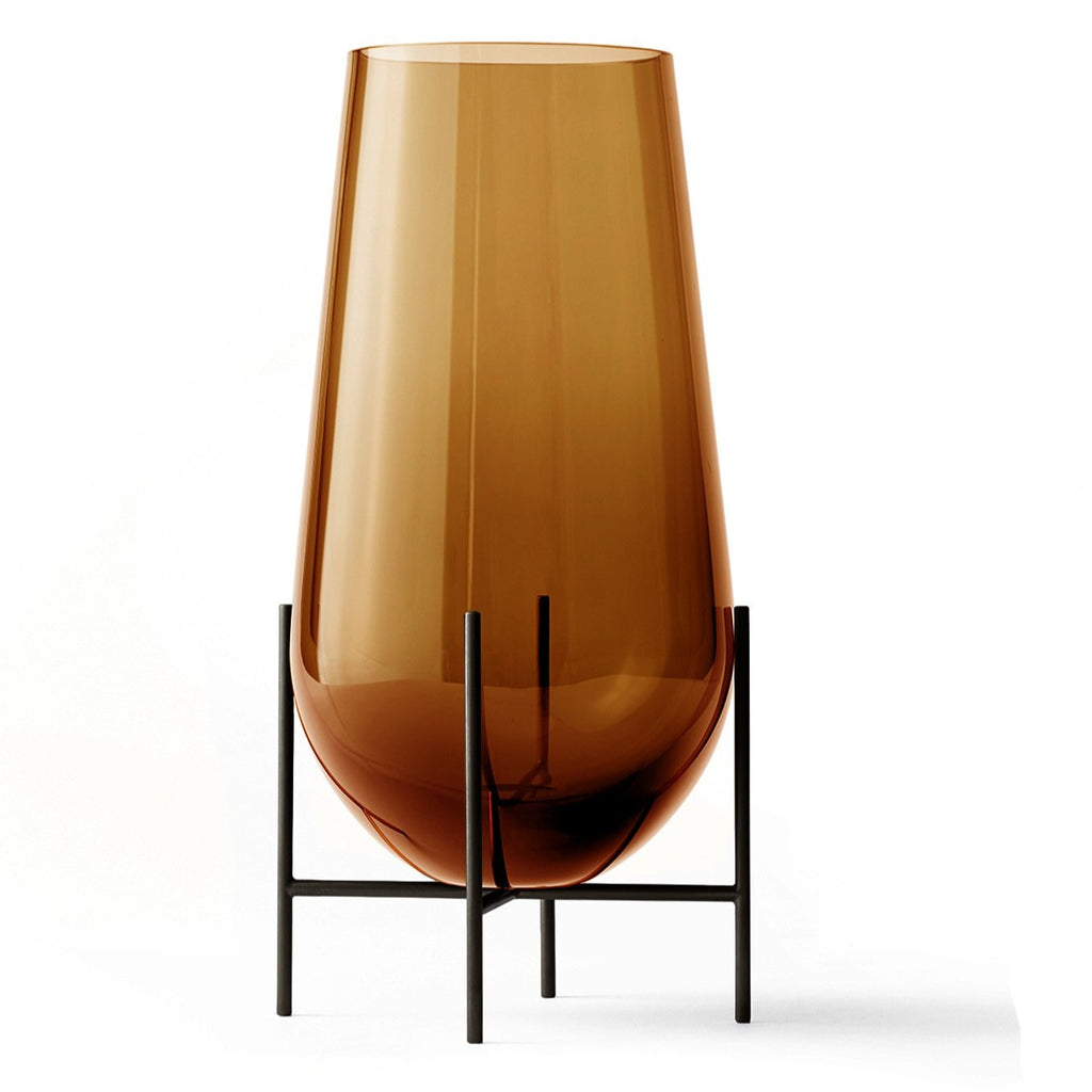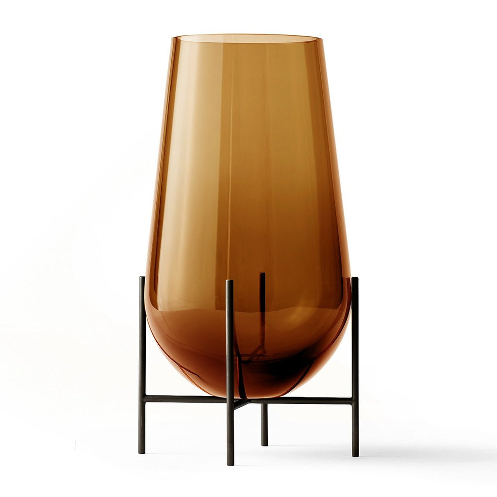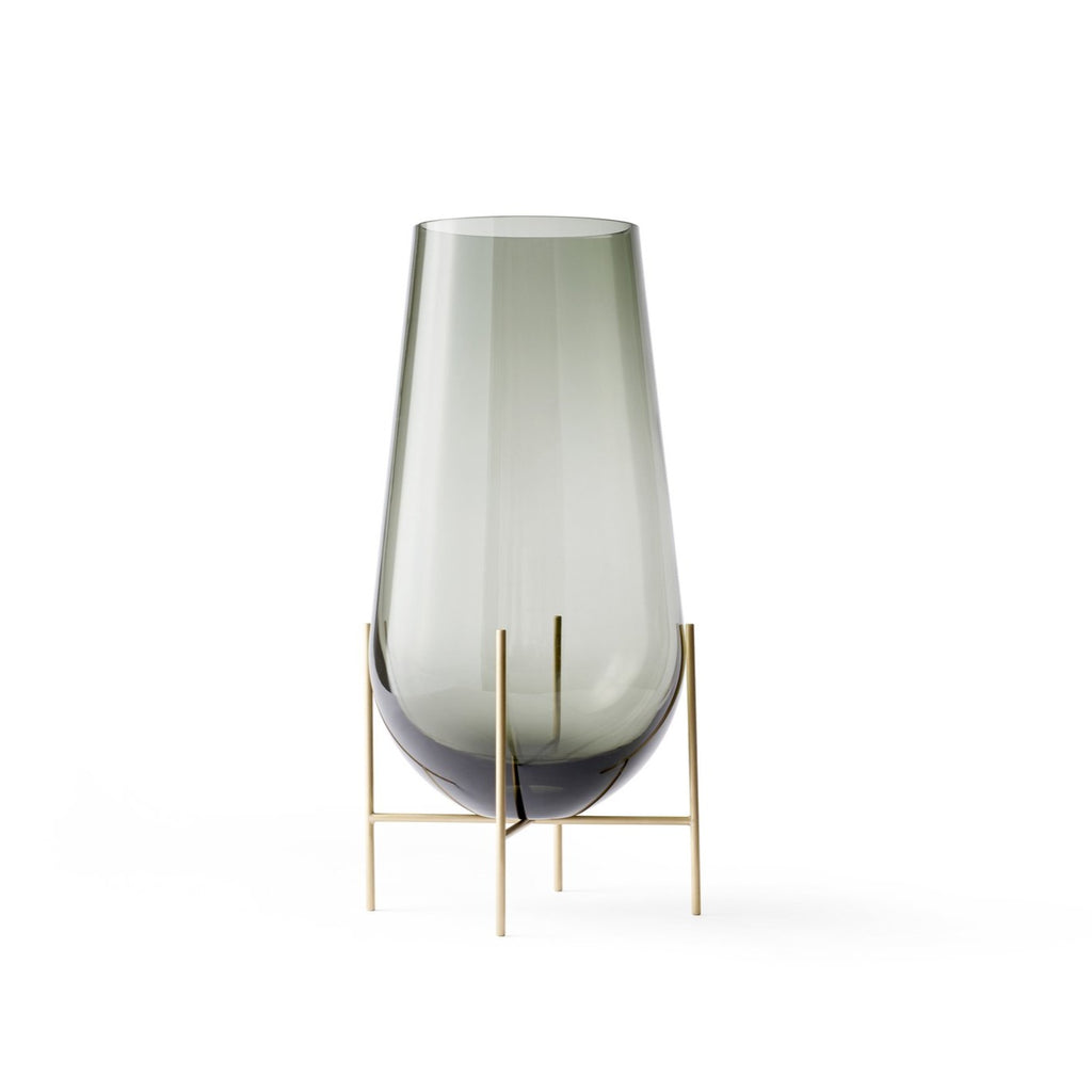 The Échasse Vase—The first piece in the now-iconic series was inspired by laboratory test tubes. The drop-shaped form is as elegant when holding flowers on a desk, living room floor, or nightstand as it is when left unfilled. The smoked glass version with brushed brass legs is available in three sizes. The unique colour gradients of the glass give the design depth and contrast against the legs’ clean lines. The smallest vase is now available with clear glass and bronzed brass legs; a classic pairing to complement any interior palette, in a size ideal for more compact spaces.