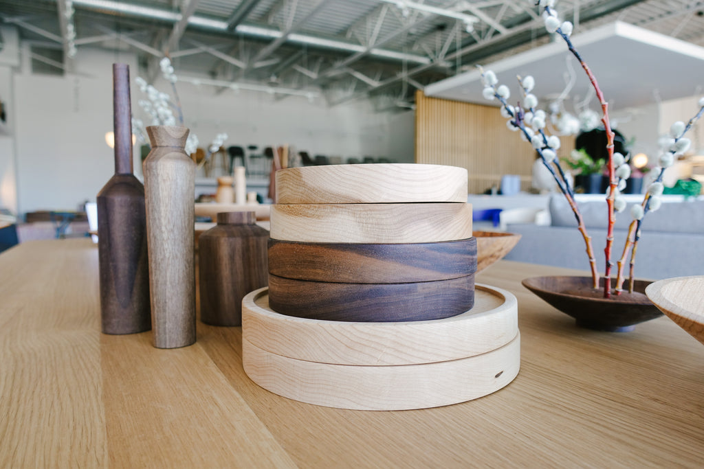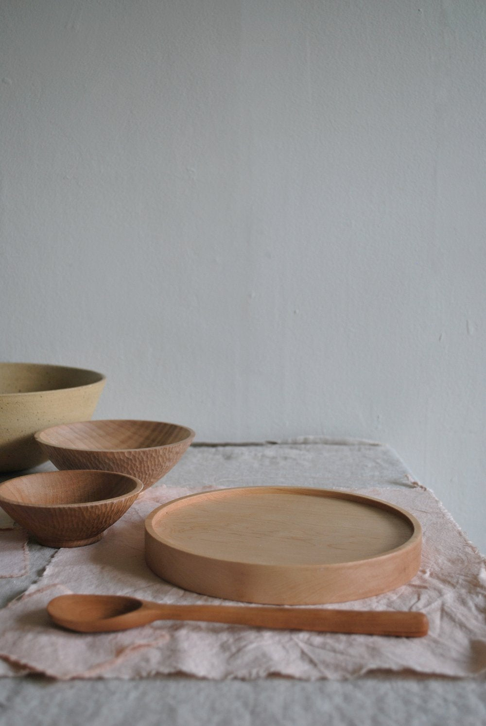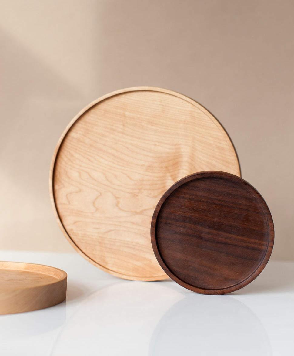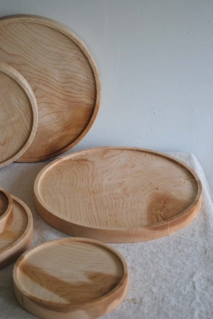 One of a kind hand turned plates. Treated with an organic beeswax to make it food safe. Made from local maple wood or dark walnut, please note grain tone and shade may vary.