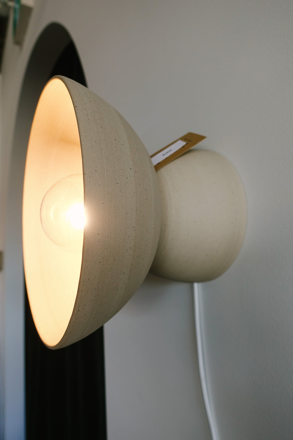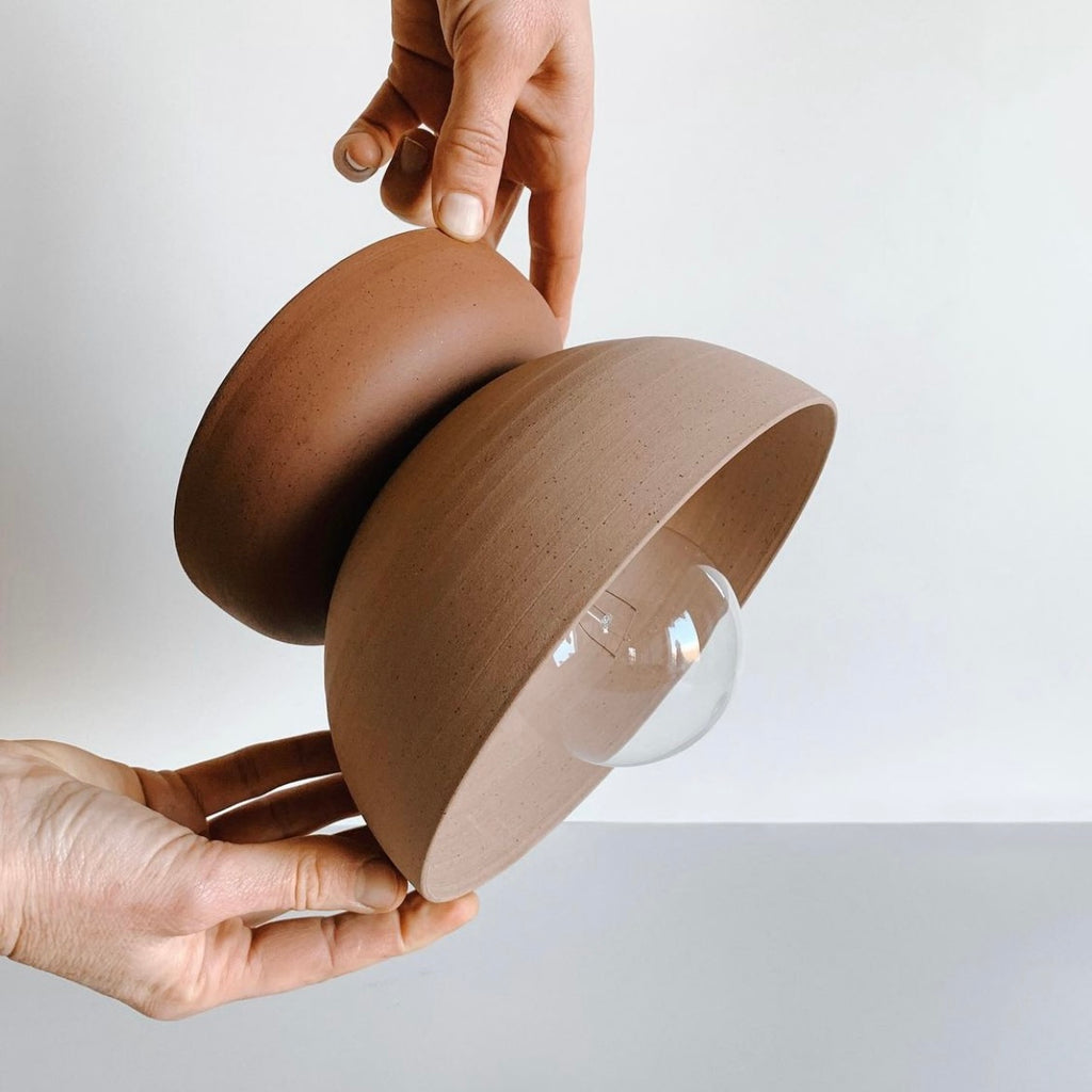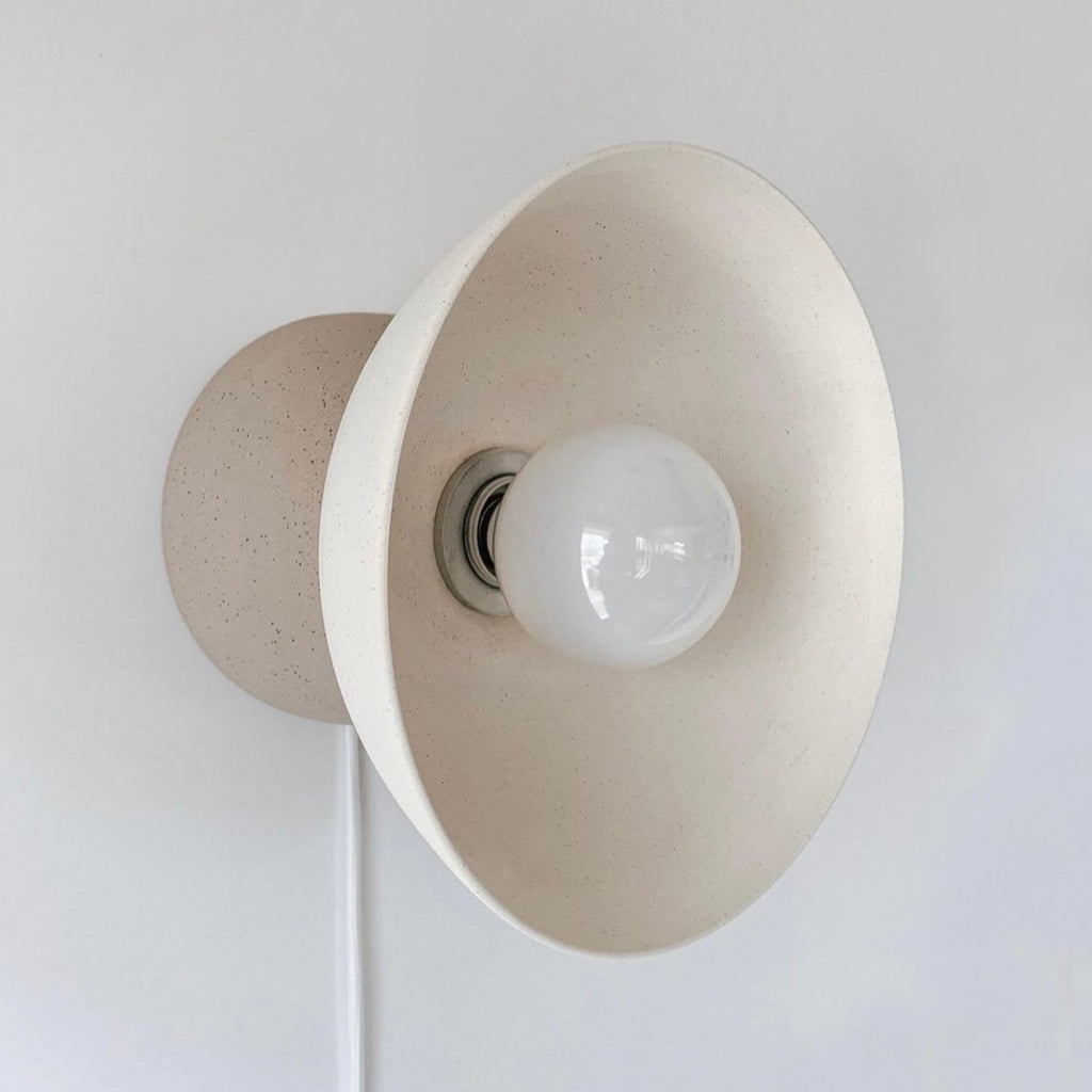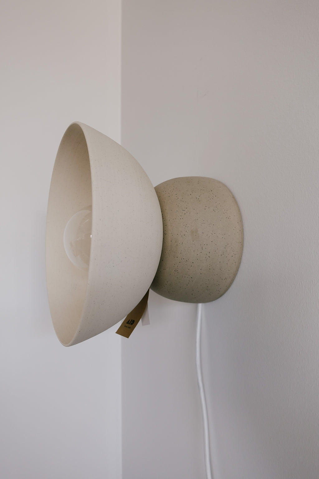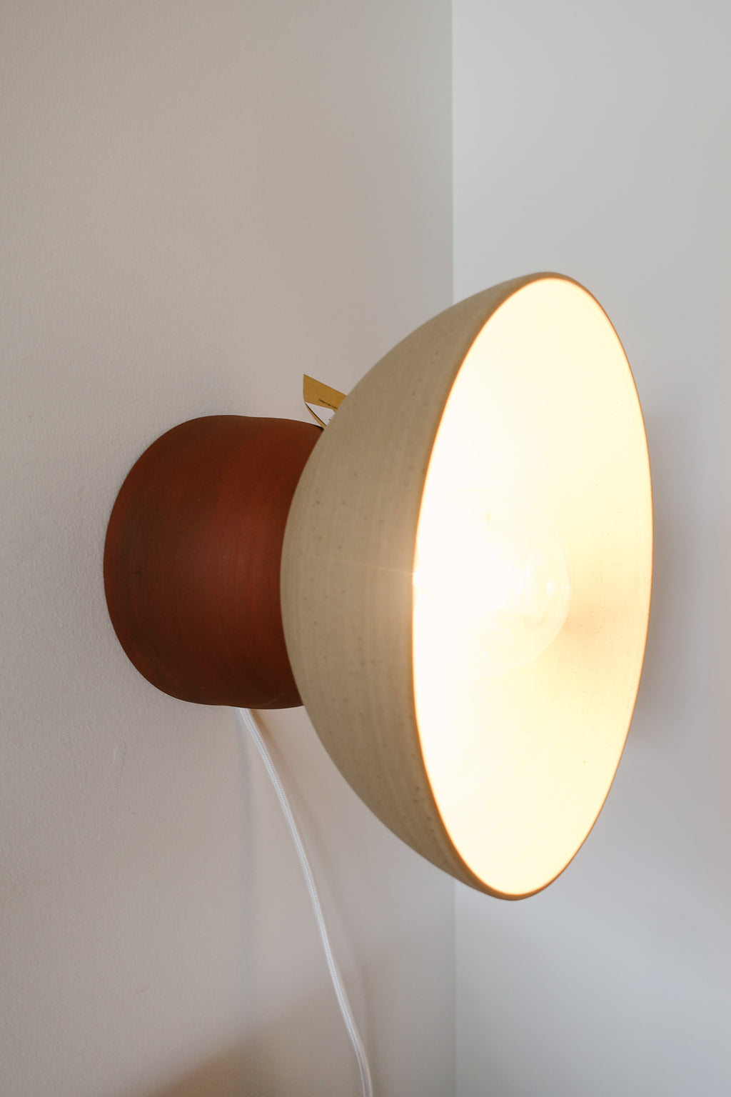Sculptural and functional, the Echo series are one-of-a-kind handmade stoneware sconces. The plug-in cord allows for versatility as it can be hung in most locations (stud or heavy-duty wall anchor required). Each sconce is assembled with pieces wheel thrown by both Amanda and Danielle, and exemplifies their unique style inspired by 20+ years in the design industry. The sconces come as plug-in, but are also available in flush mount hardwire, please contact us for this option.