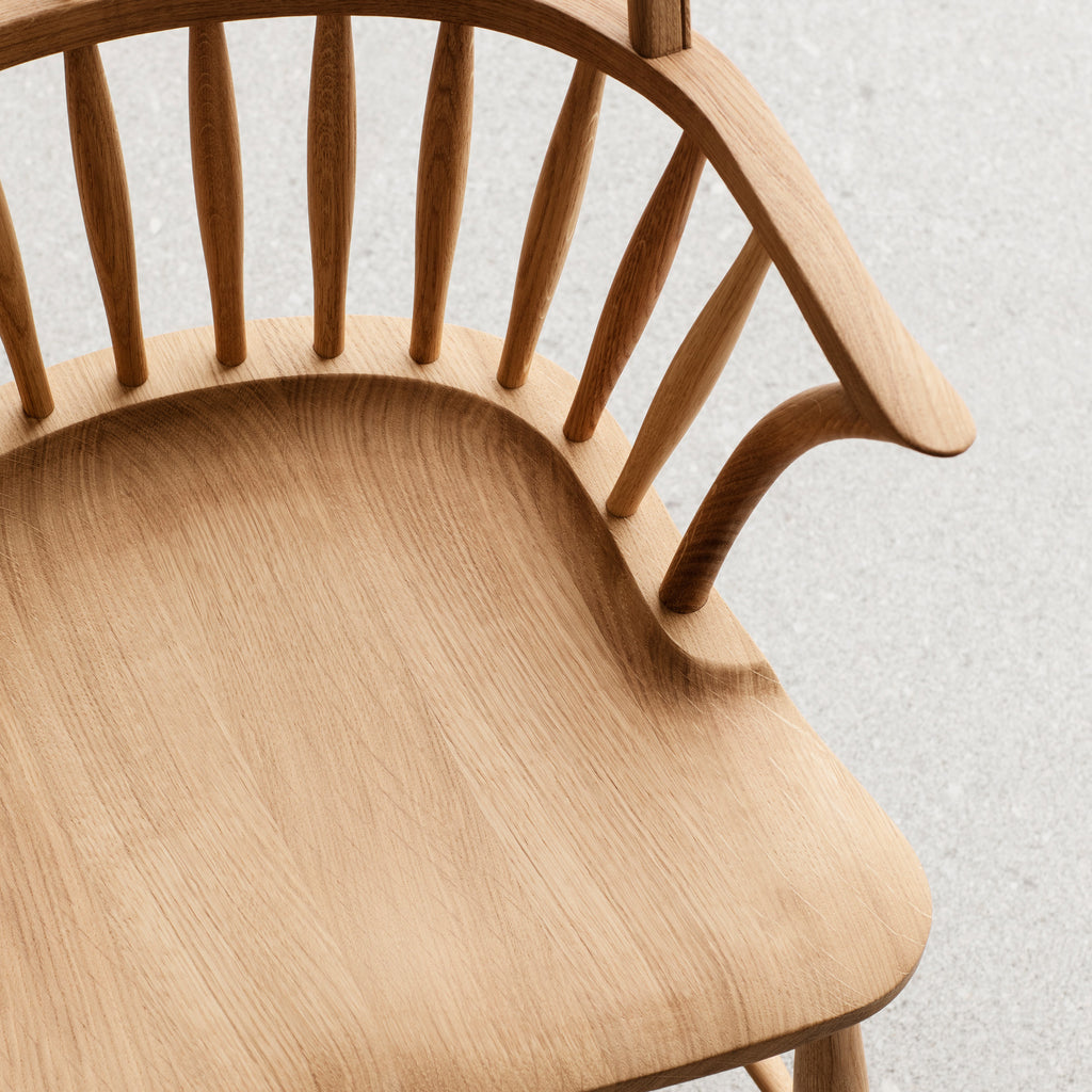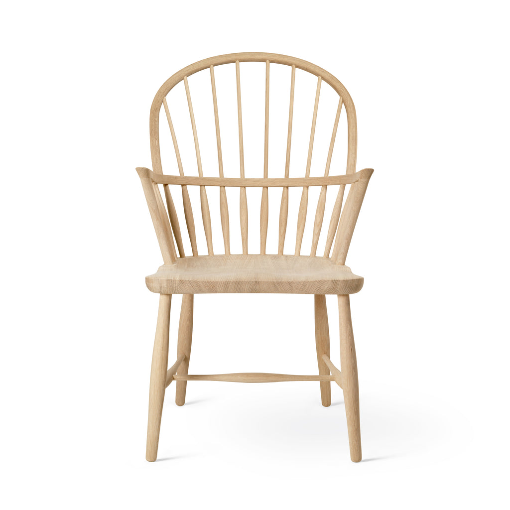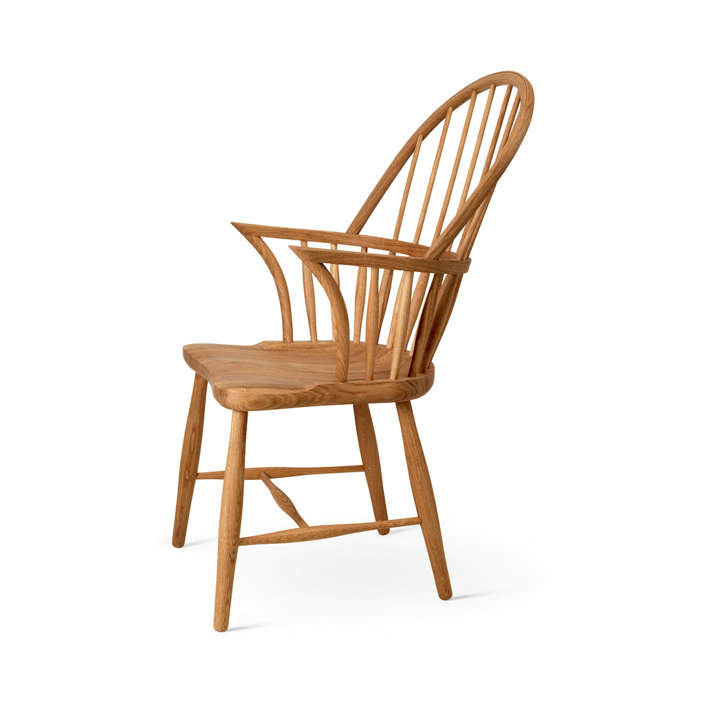 The Windsor Chair was designed by the Danish architect and cabinetmaker Frits Henningsen in 1938. Until 2003, the chair was continuously in production at Carl Hansen & Søn and is now being relaunched with a comfortable seat cushion. Frits Henningsen's FH38 Windsor Chair is as relevant today as the original English archetype made more than 300 years ago. The chair hides many artisanal challenges as different carpentry techniques have been used. Making the chair thus requires the skills of an experienced joiner.