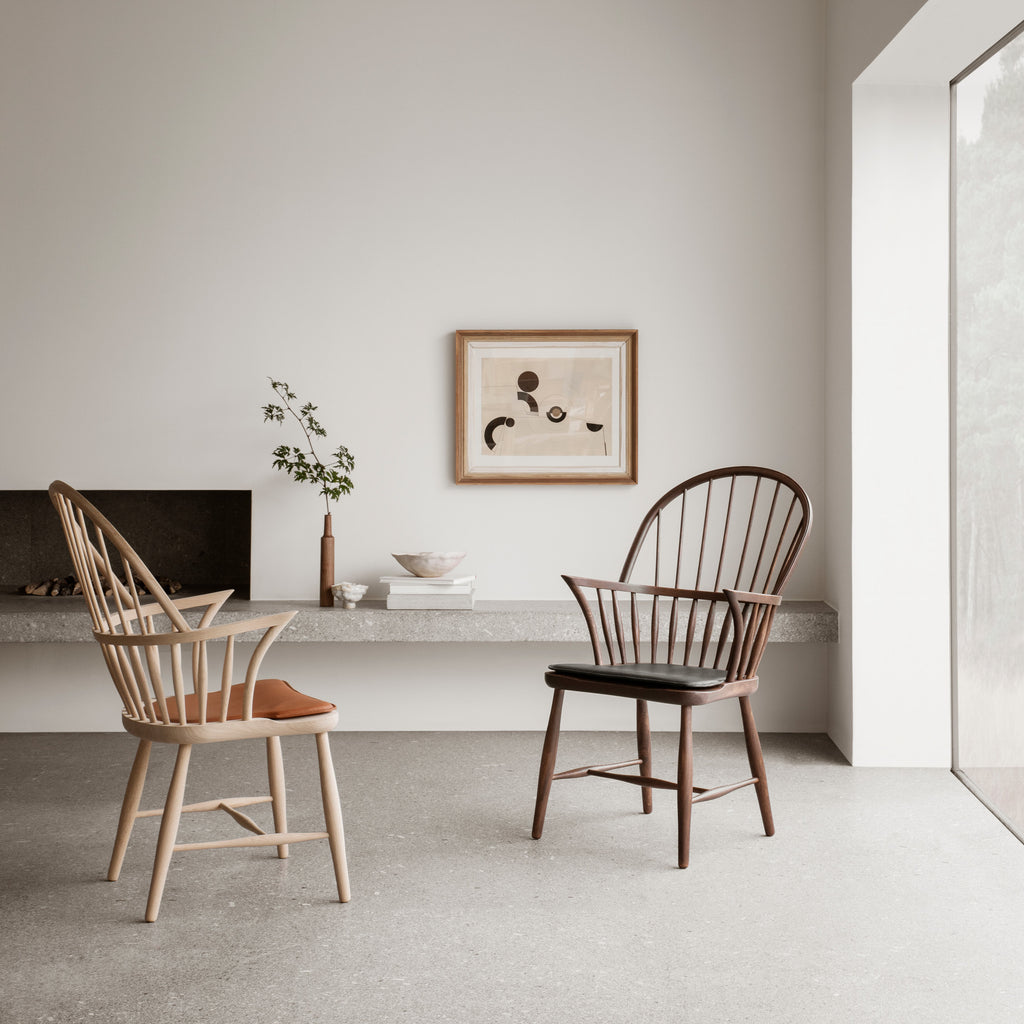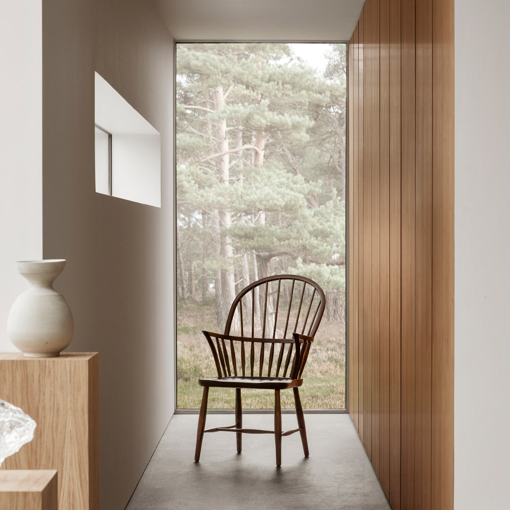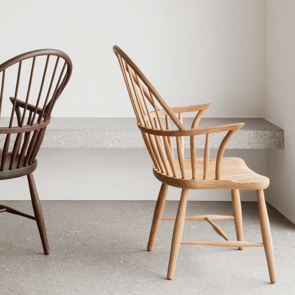The Windsor Chair was designed by the Danish architect and cabinetmaker Frits Henningsen in 1938. Until 2003, the chair was continuously in production at Carl Hansen & Søn and is now being relaunched with a comfortable seat cushion. Frits Henningsen's FH38 Windsor Chair is as relevant today as the original English archetype made more than 300 years ago. The chair hides many artisanal challenges as different carpentry techniques have been used. Making the chair thus requires the skills of an experienced joiner.