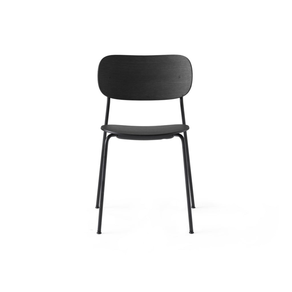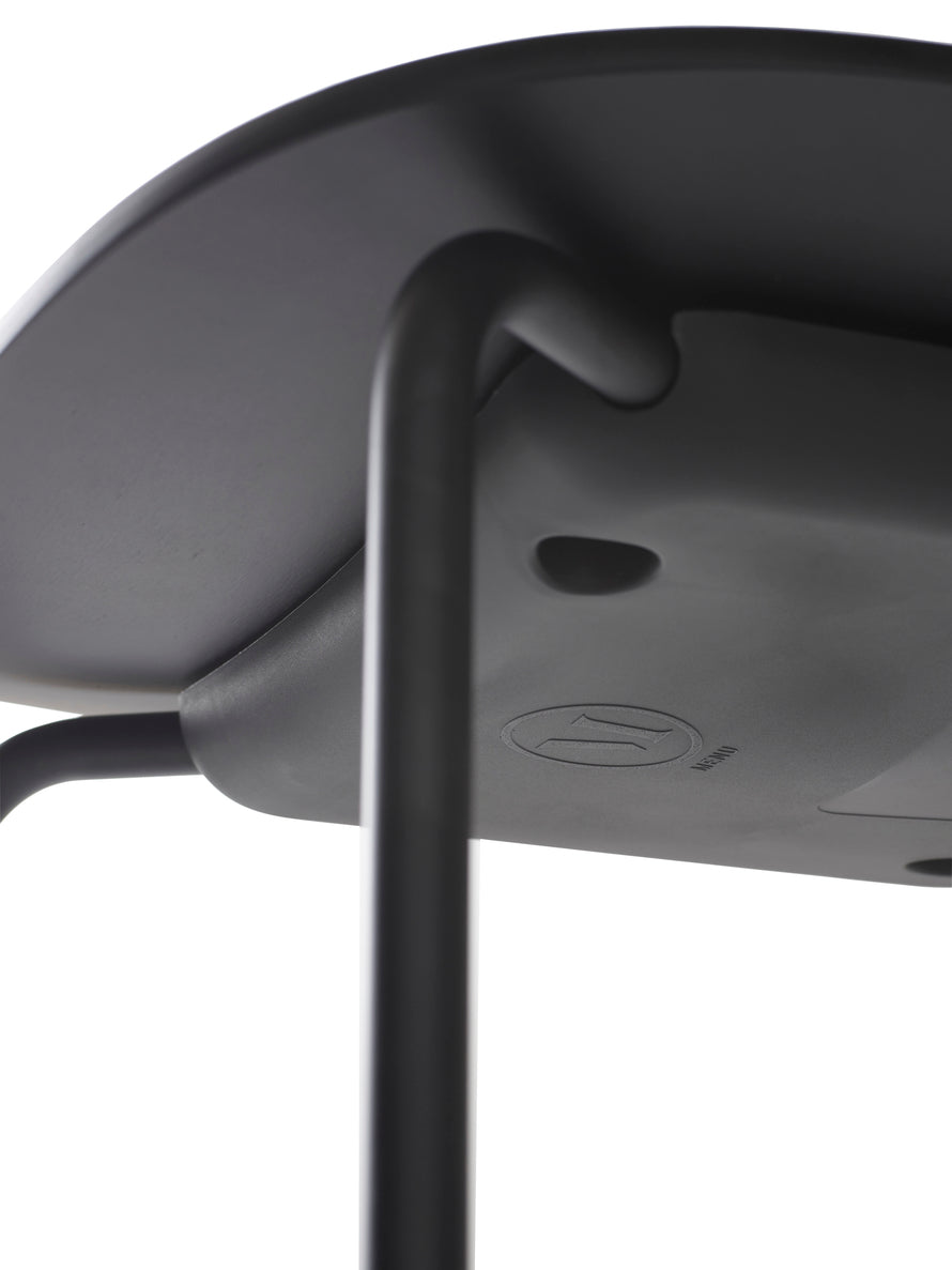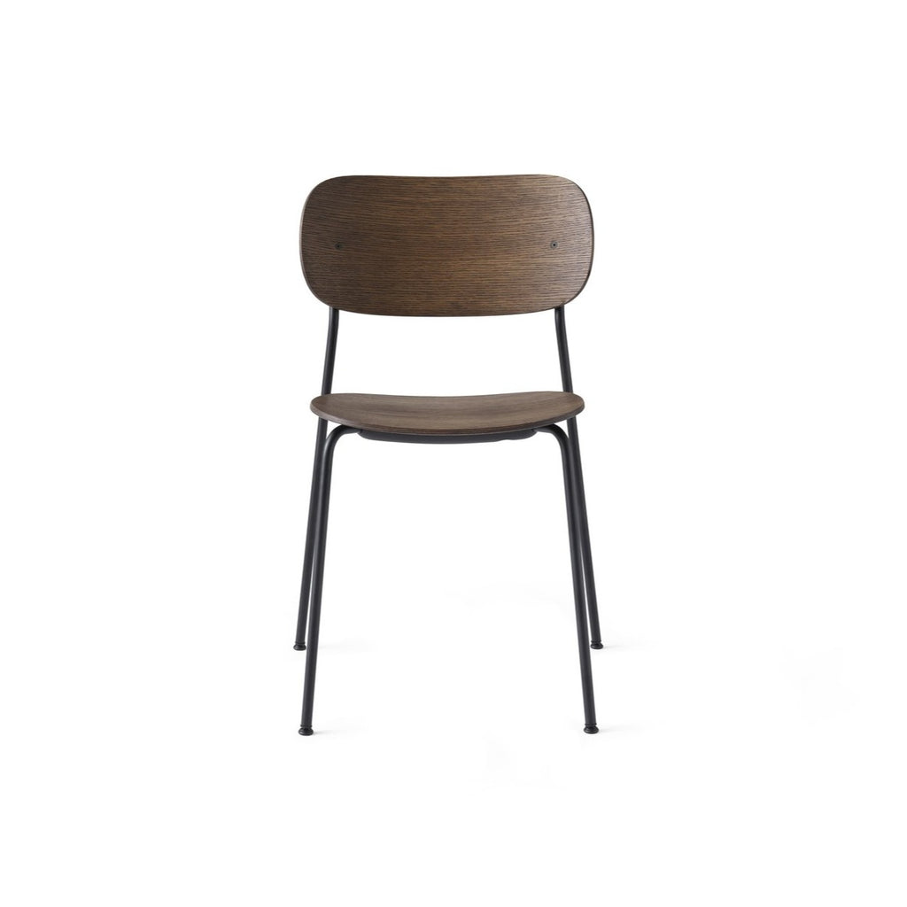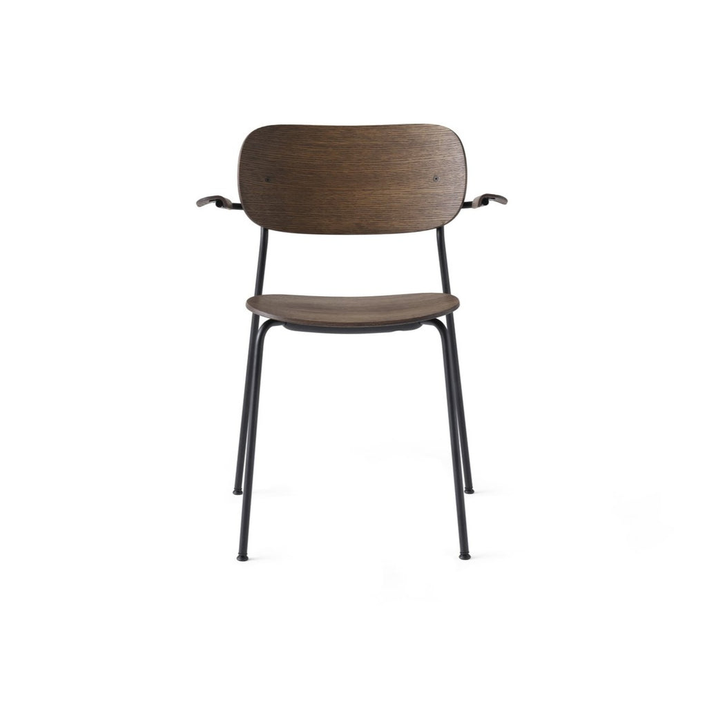 The chair is distinguished by a wide veneer back, whose proportions allow freedom of movement and provide maximum comfort. Comfort also led the design of the backrest, which is positioned and angled for exceptional support. The Co Chair’s slender yet robust powder-coated steel frame defines the intriguing geometric silhouette – and delivers high durability. Optional veneer armrests adding another aesthetic and functional dimension, serving both for added comfort and for suspending the chair off the floor for easy cleaning.