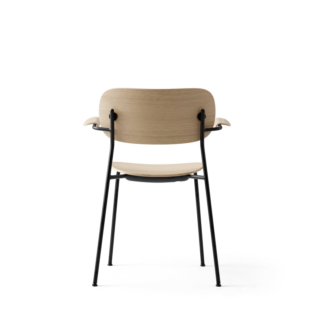 Please allow 4-6 weeks for delivery of all items on Co-Chair with arms (in Chrome base/Wood, Black base/Black oak, Black base/Dark stained oak, Black base/Natural oak) in-stock at Audo US.