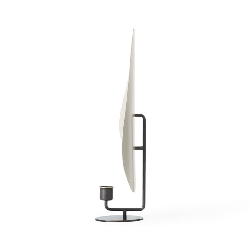 Inspired by French modernist lighting fixtures and designed to resemble a flickering flame, Flambeau is a sculptural design with playful presence. The metal backplate magnifies and reflects candlelight to create intriguing shadows and beautiful ambience.