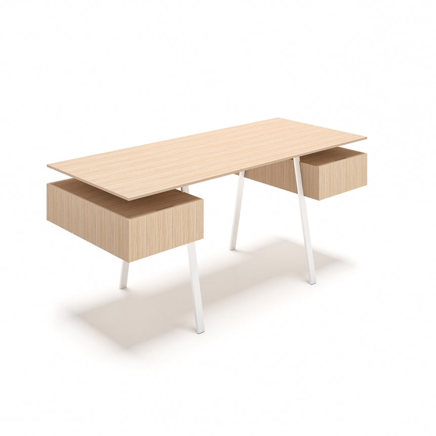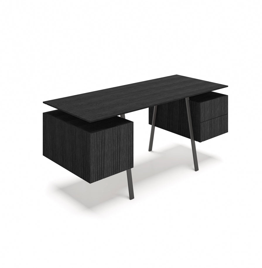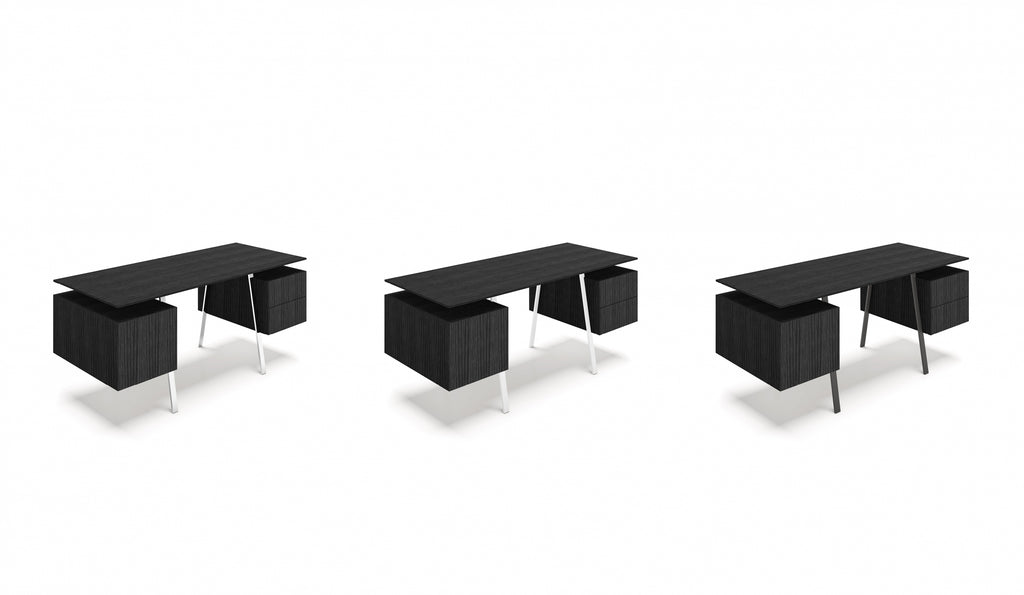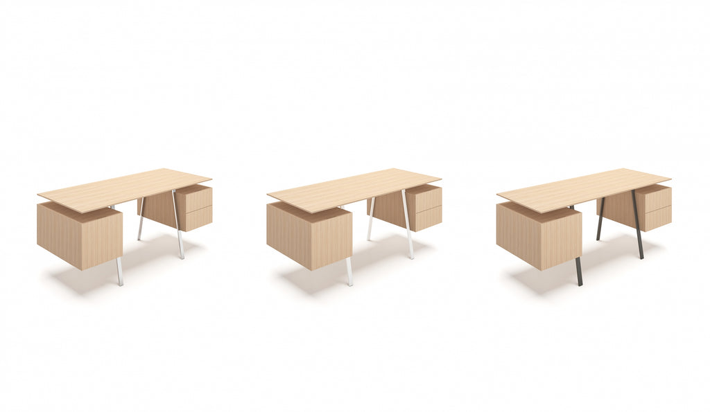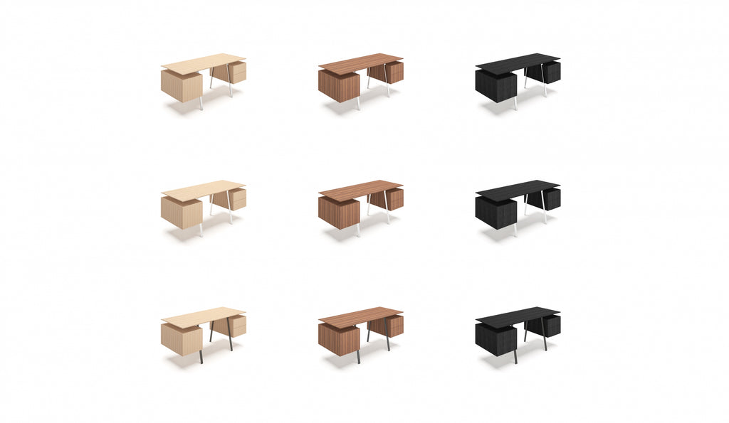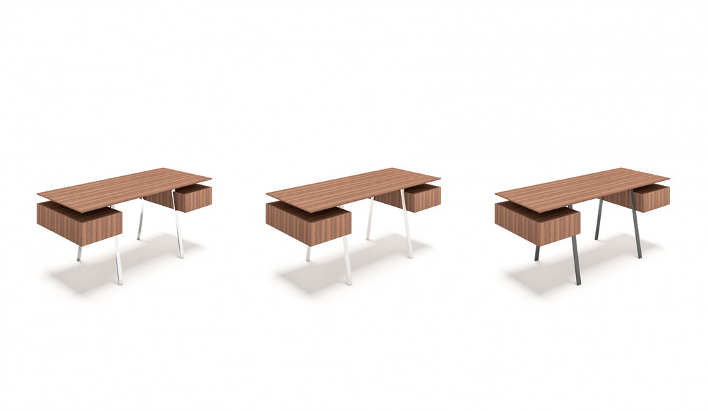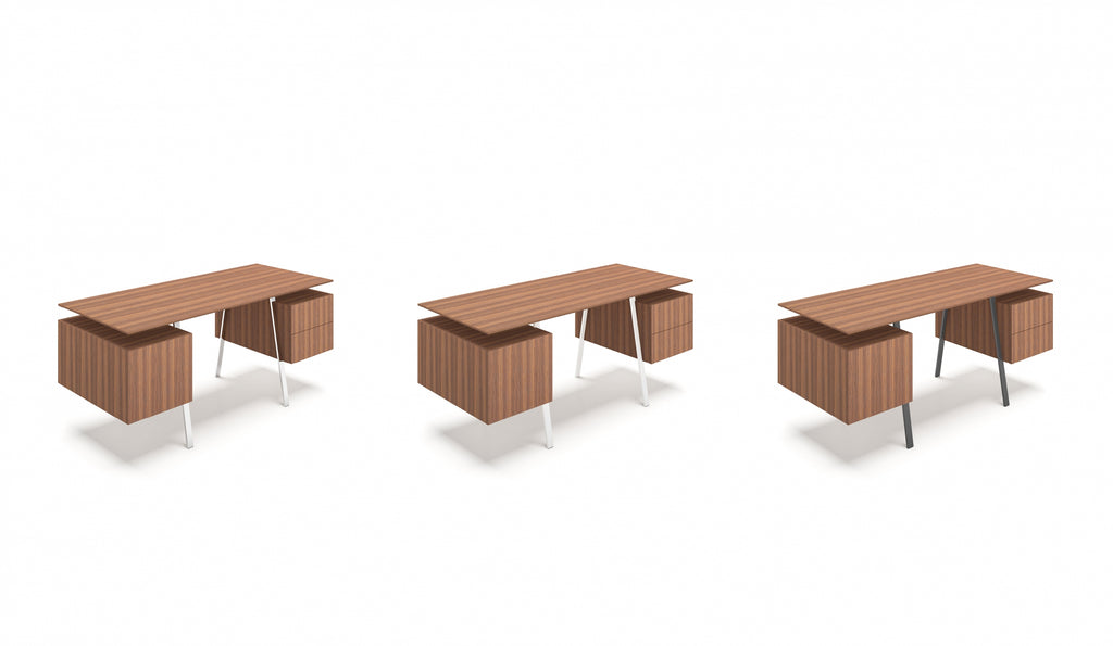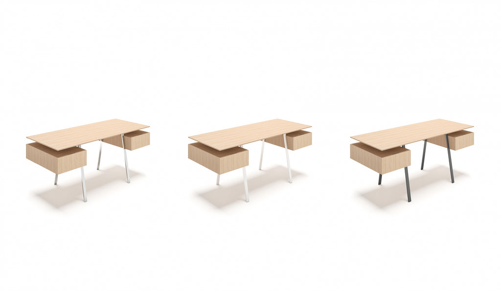 The popular Homework desk is available with a wood top available in walnut, oak or black oak. The wood top accompanies the veneered drawer cabinets of the same finish for an all-wood version of the desk.