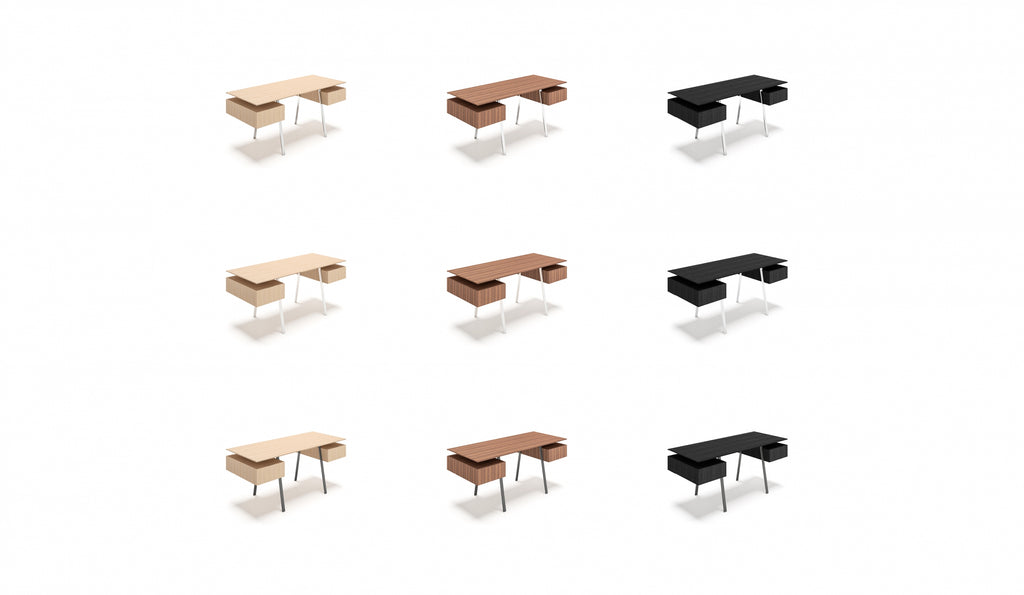 Highly versatile and customizable, the Homework is a deceivingly simple writing desk. Conceived for home offices or other small offices where the desk will be on display, Homework can be adjusted according to your unique needs. The wooden top compliments the wooden drawers and softens the overall effect.