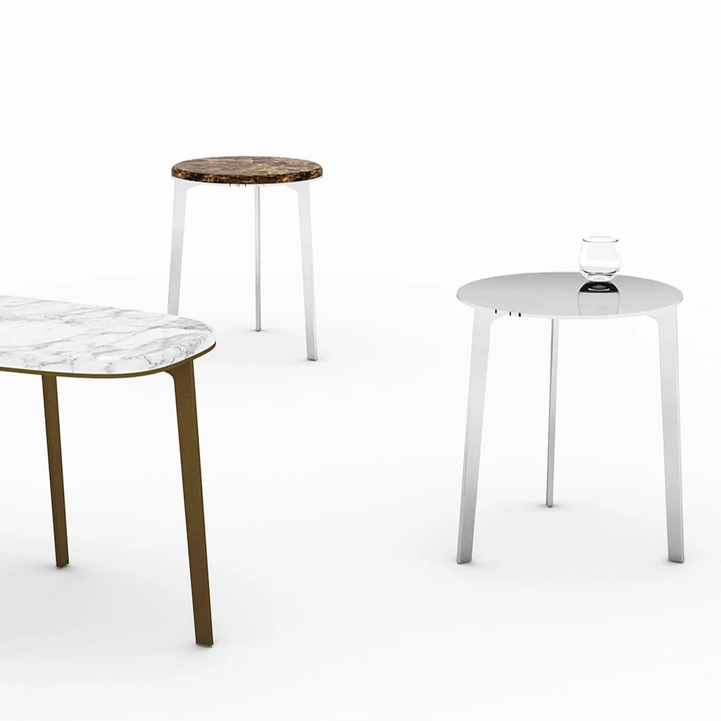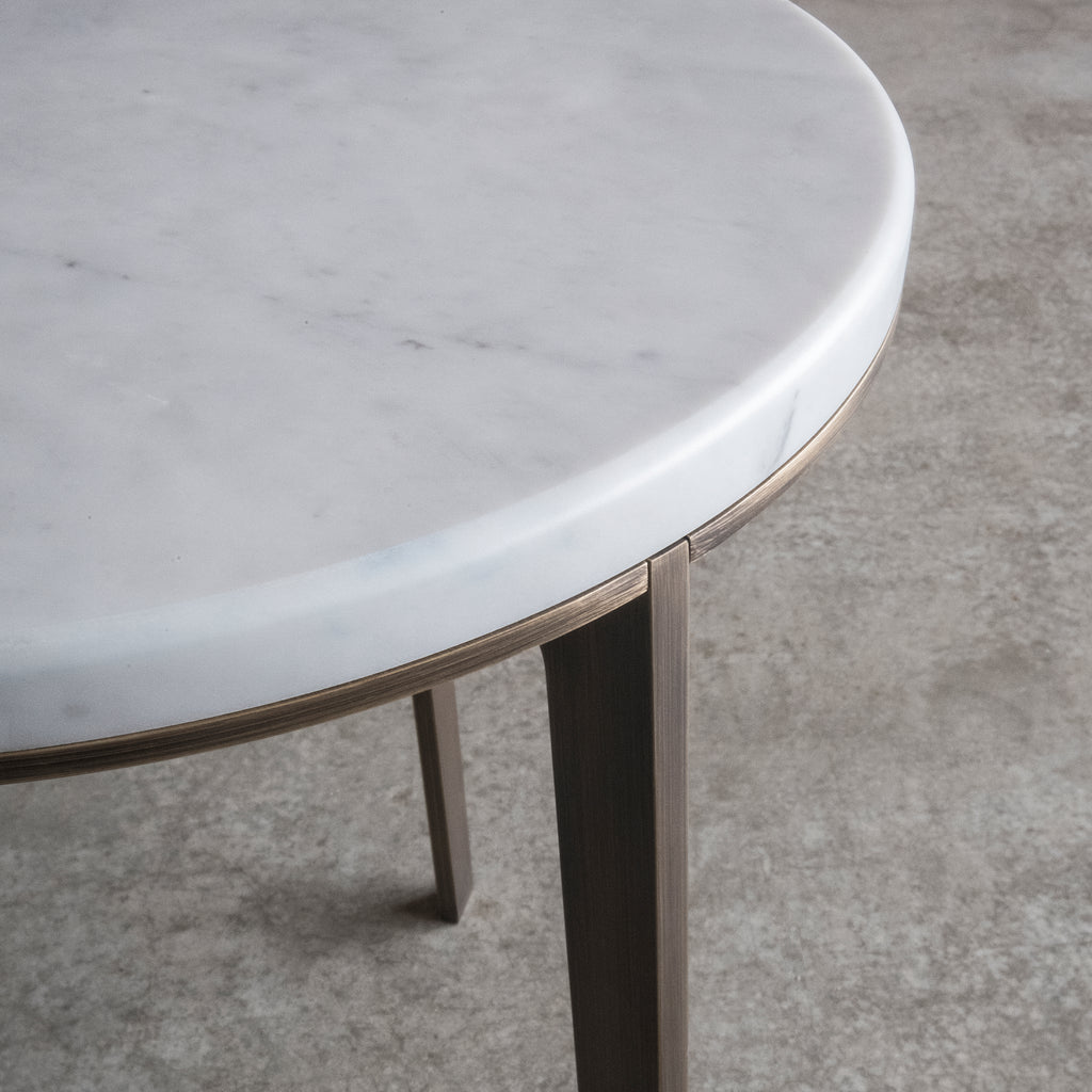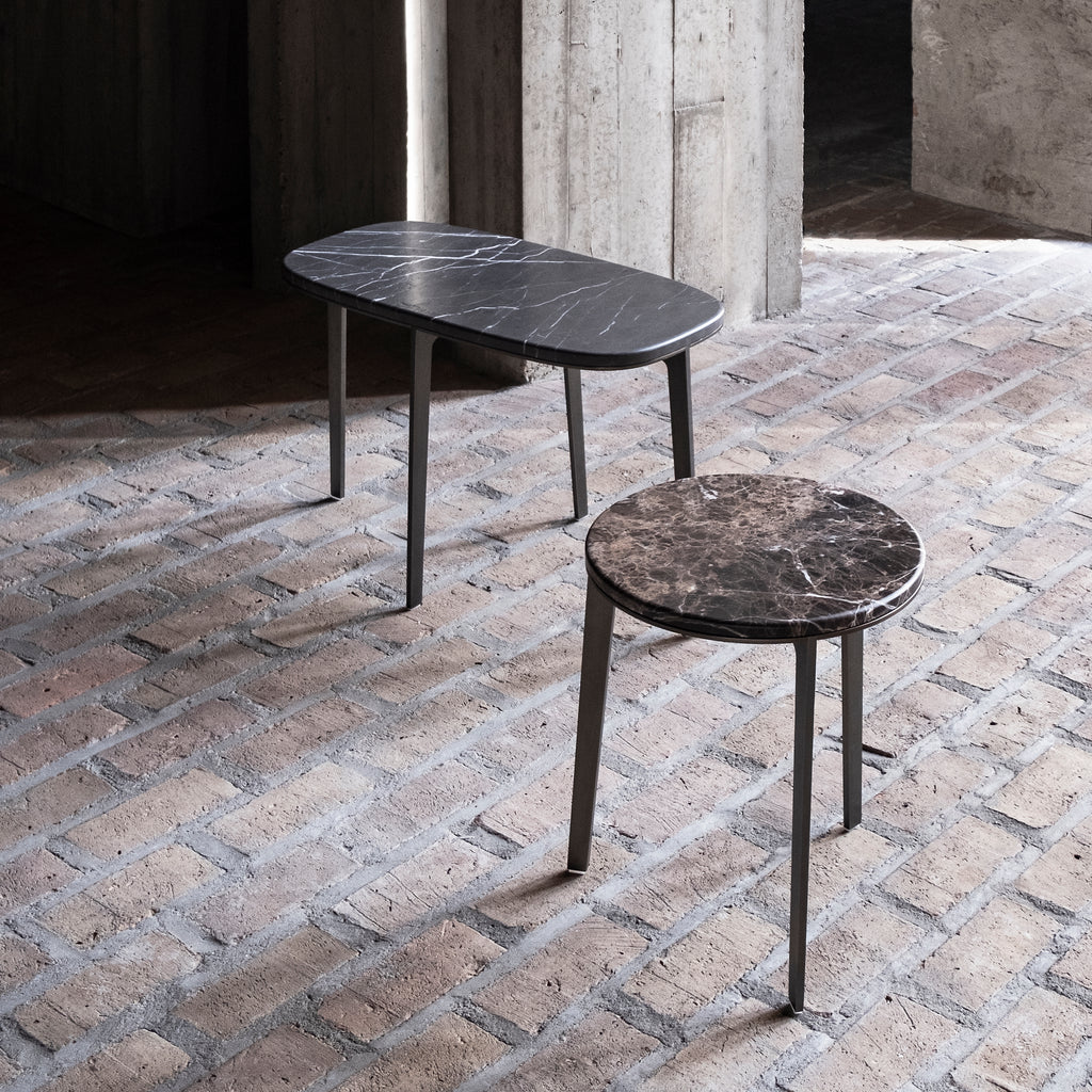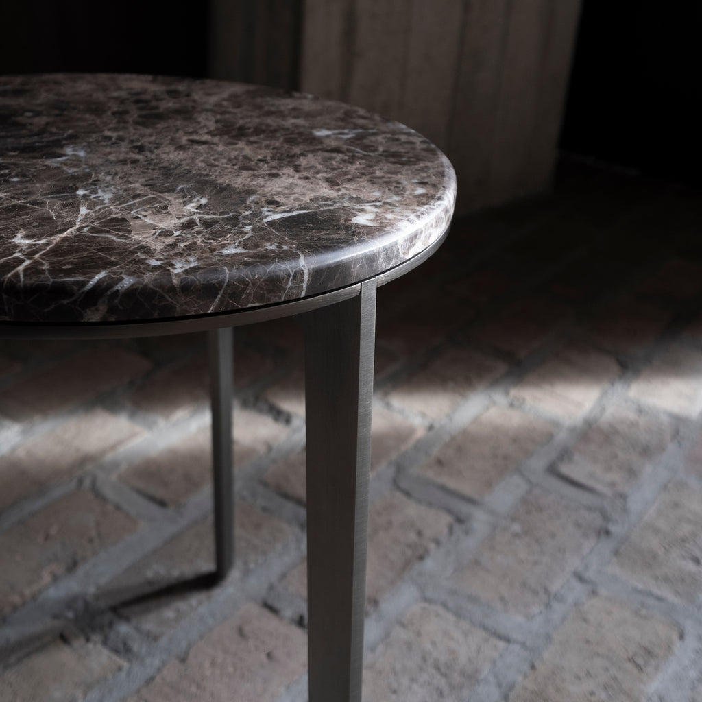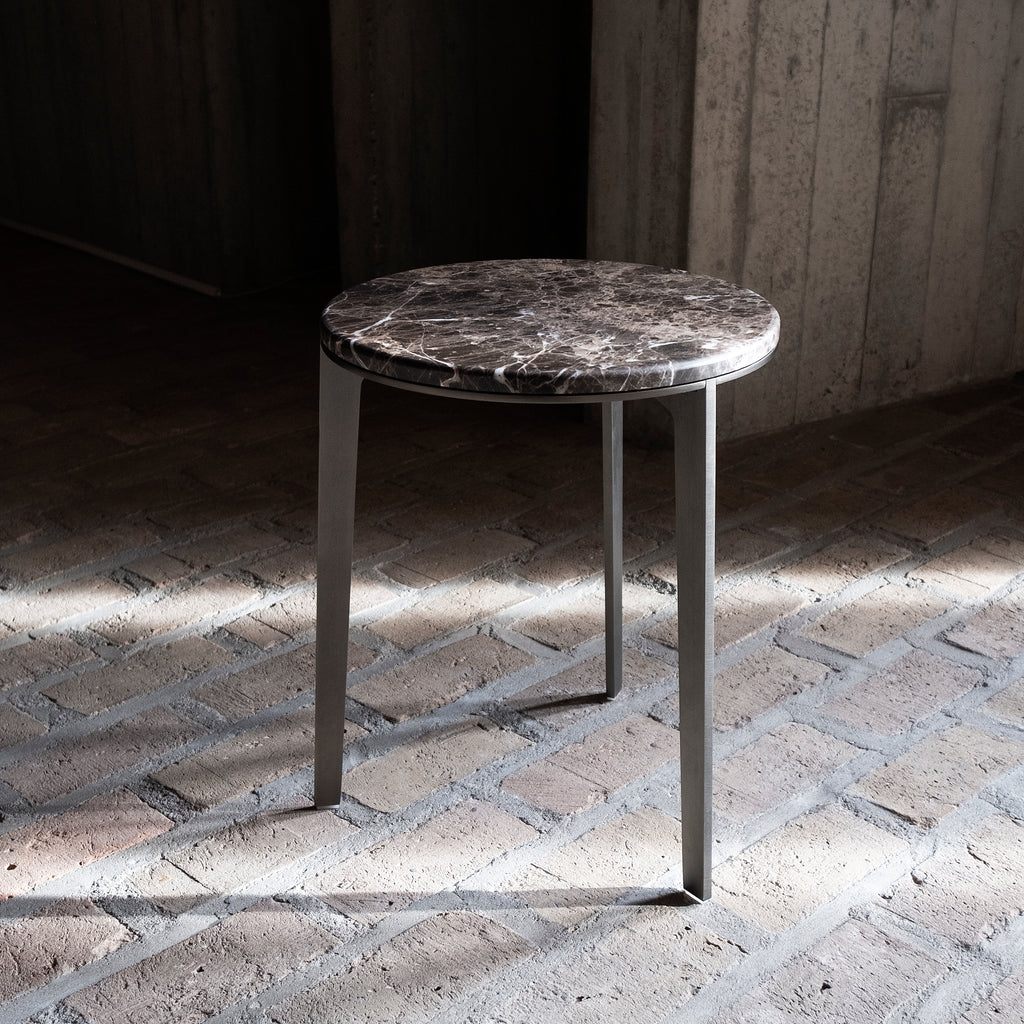 A little bit of elegance to add to any setting, the Side tables are subtle pieces that come in a variety of combined finishes. Side are available in any of the four Bensen marbles (Carrara, Emperador, Graphite, and Nero Marquinia). The frame is either chromed, or finished with a bronzato metal finish.