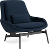 Shapely curves, a gentle recline and “just-right” cushions invite the lost art of unwinding. A sculptural powder-coated steel base sets up the striking profile. Field Ottoman also available.