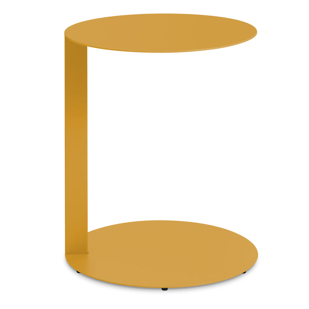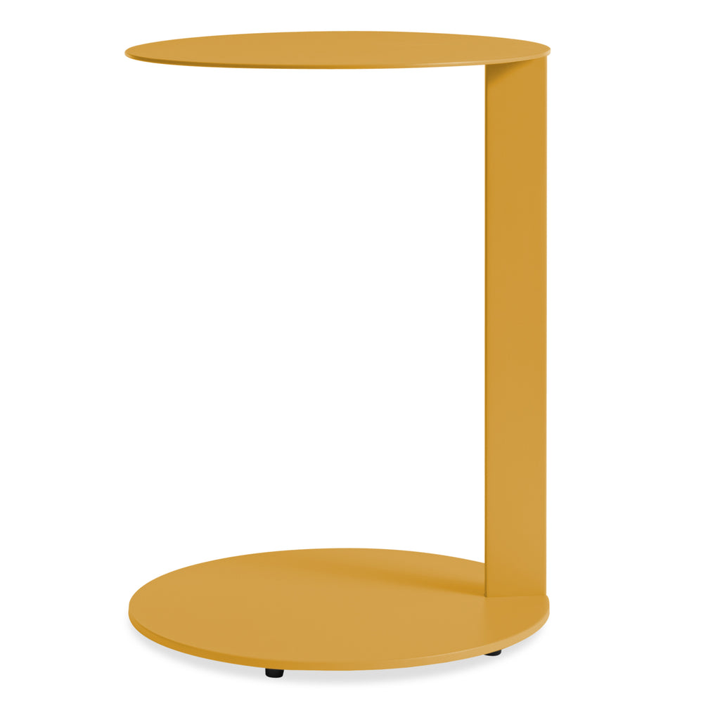 A striking slim spine of solid powder-coated steel supports a cantilevered round table top and base. Couple the well-tuned Note Side Table with sofas, lounges and beds to create a floating workable surface in a pinch.
