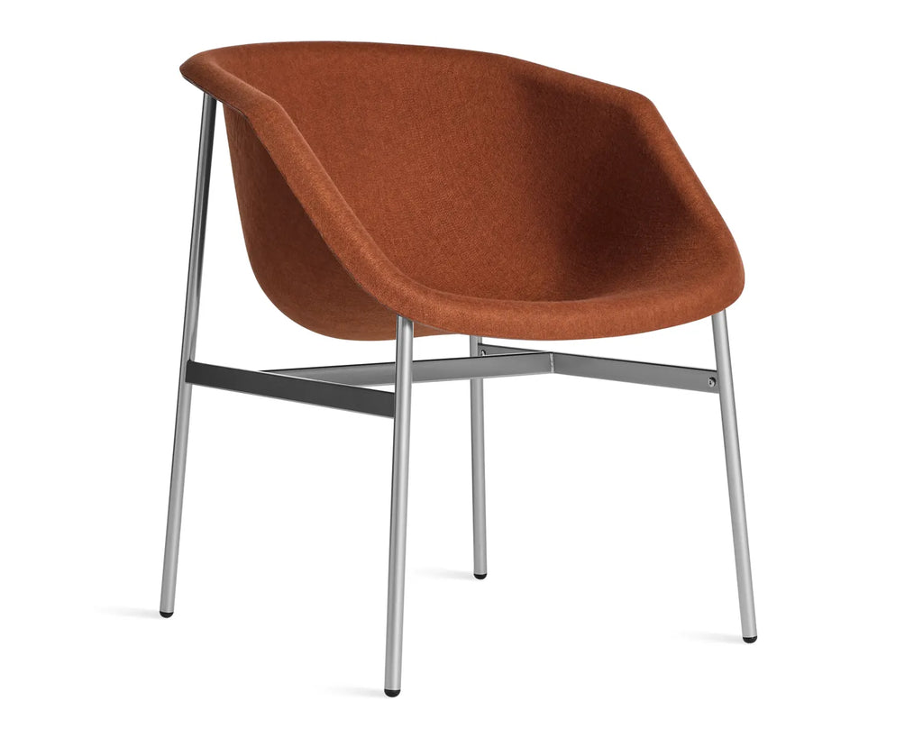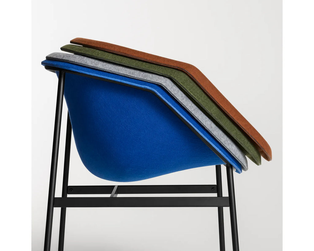 An unfussy powder-coated steel frame props up a fully felt and fully comfortable perch. Made from recycled post-consumer polyester, the lightweight seat shell is equal parts durable and adorable.