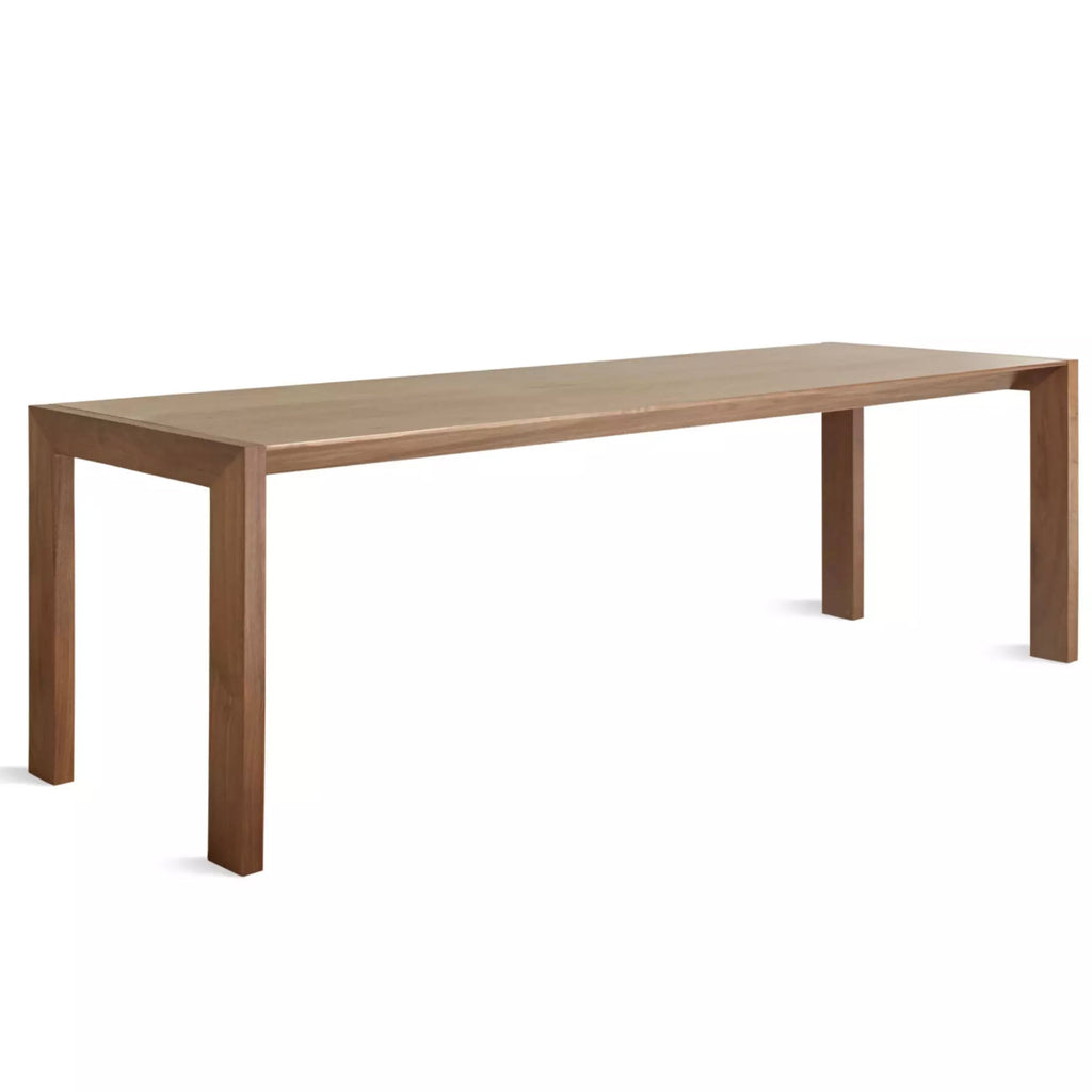Simple works. Broad, solid walnut legs and a beveled edge top - drop dead gorgeous. No trickery or adornment needed, the unpretentious design lets you, your meals and your company always take first place. Also available in an extendable version.