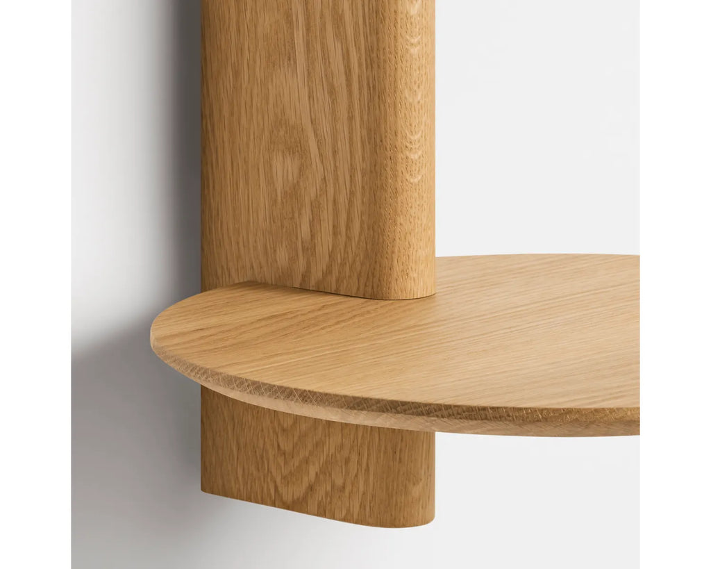 Give your wall purpose. Whether you need it to hold your drink or prop up your art books, Sidekick is always a loyal mate. Solid wood flaunts soft shapes and a chamfered edge. Float one on either side of your bed, hang one in the entry or stack a few for a visually stunning display.