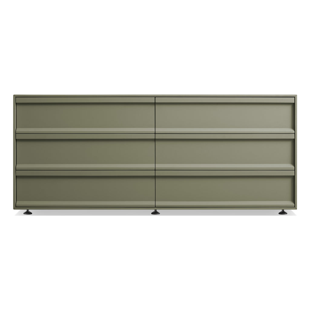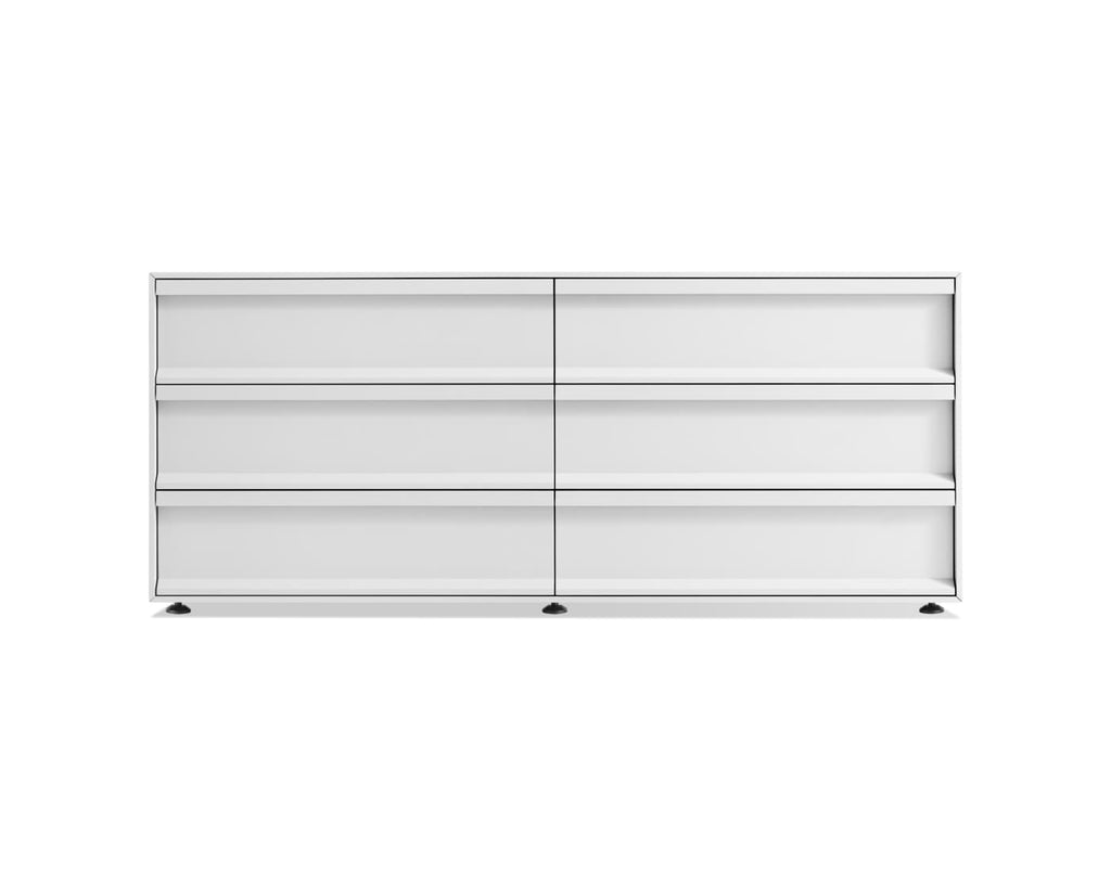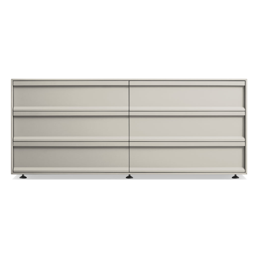 Uncomplicated storage for messy times. Beveled relief drawer pulls are set off by a matte painted finish. Soft close drawers keep the action smooth and serene.