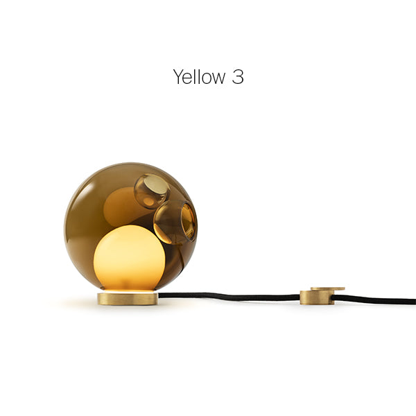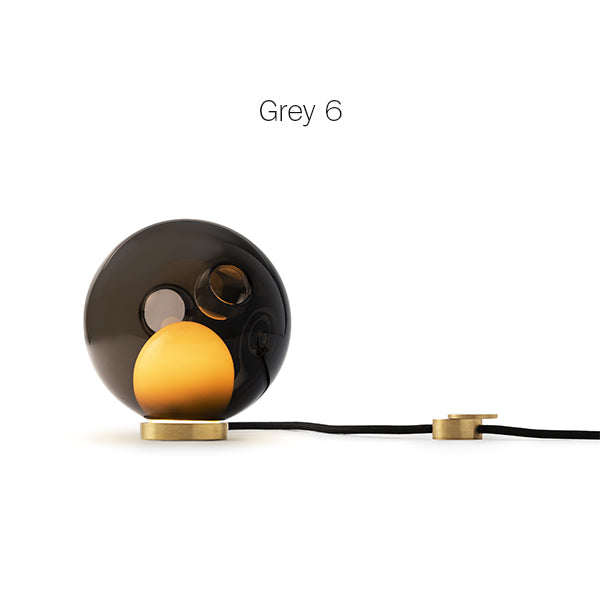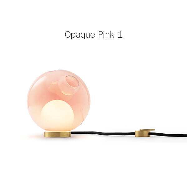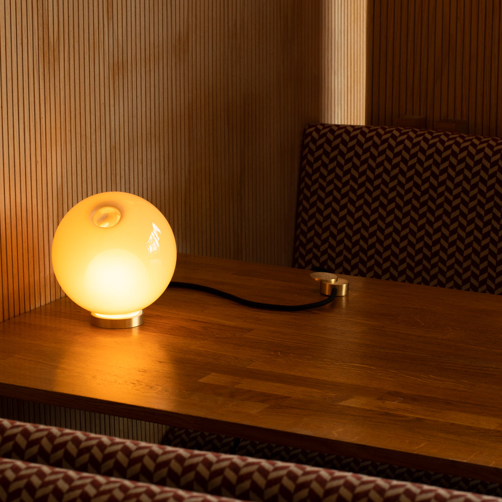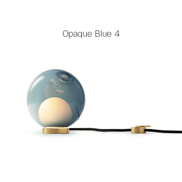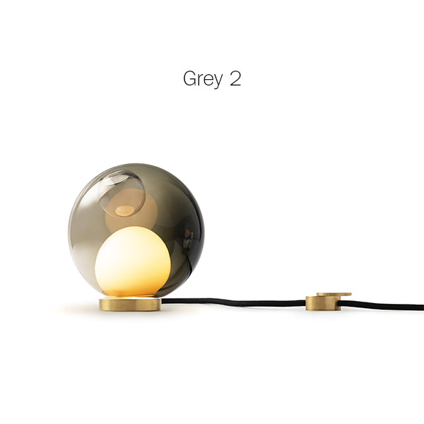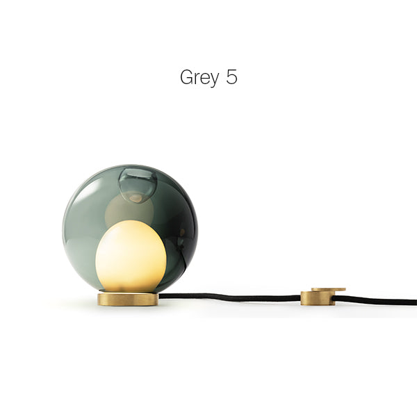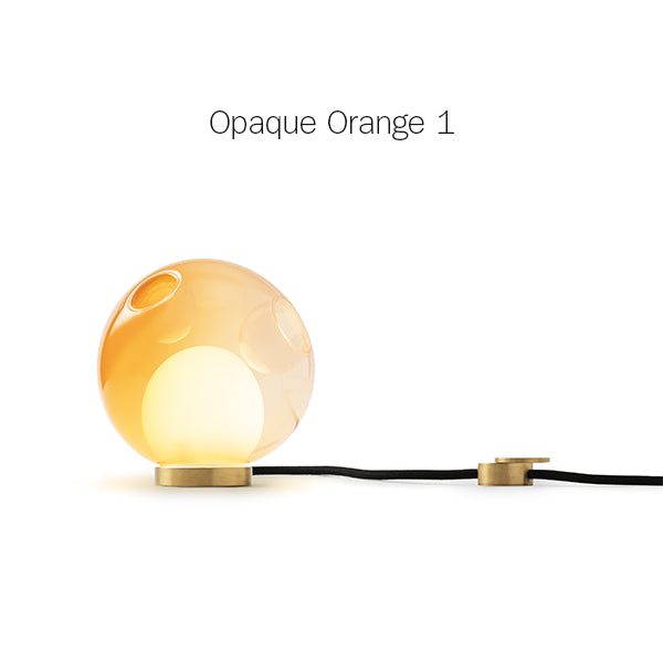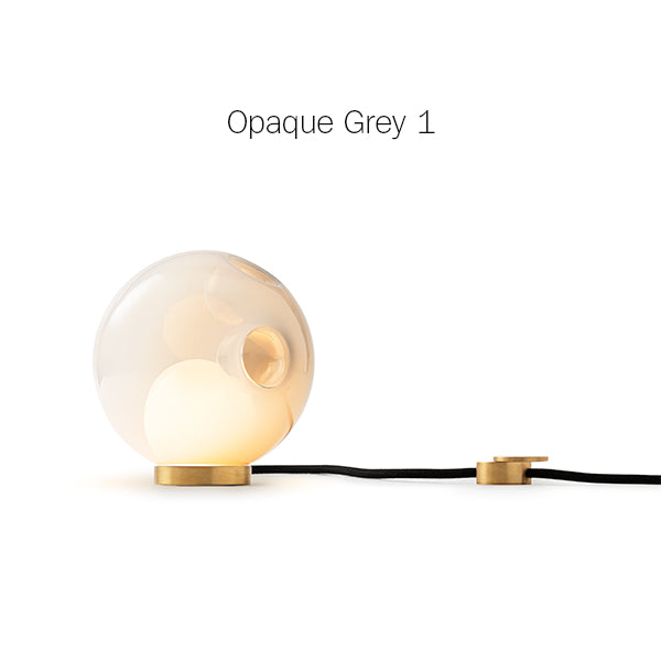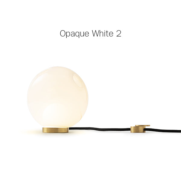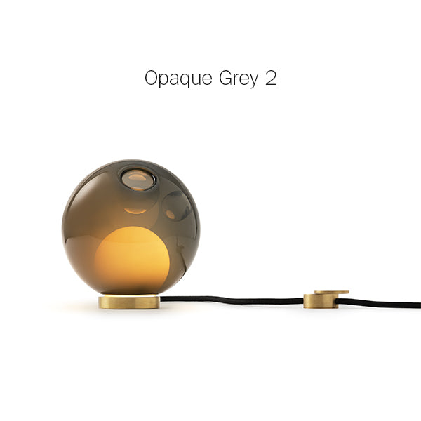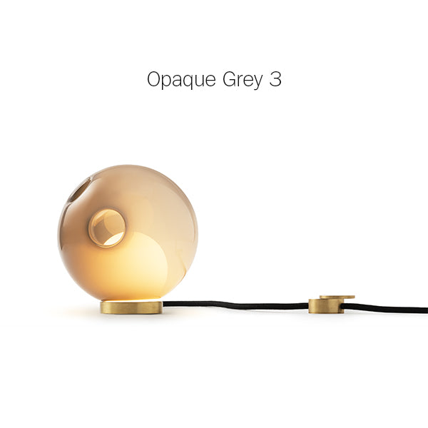 28 series pendants can be used with the table light hardware, which includes an integral dimming system housed within a sleek brass cylinder. The black fabric cord is semi-rigid and may be sculpted to add form. The brass stand has a small notch on the underside, allowing it to be hung on a wall if desired.