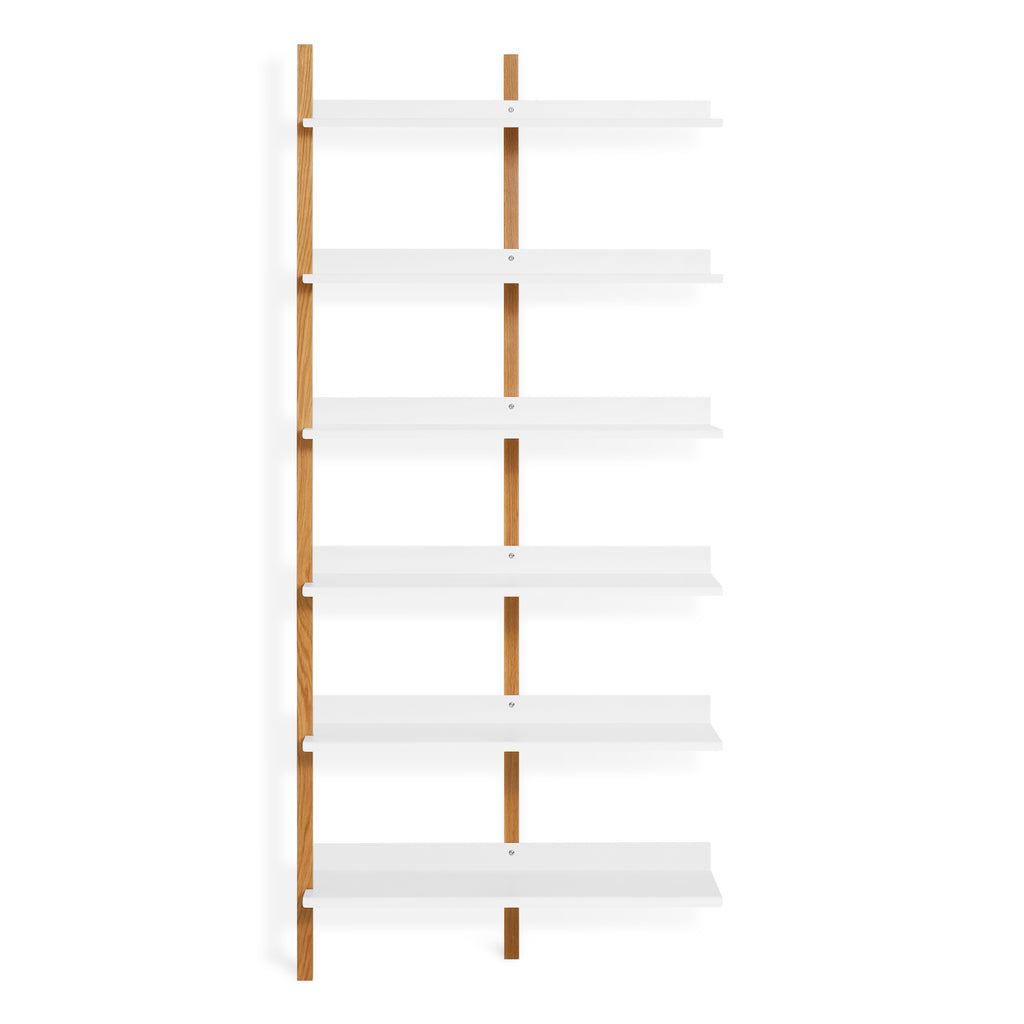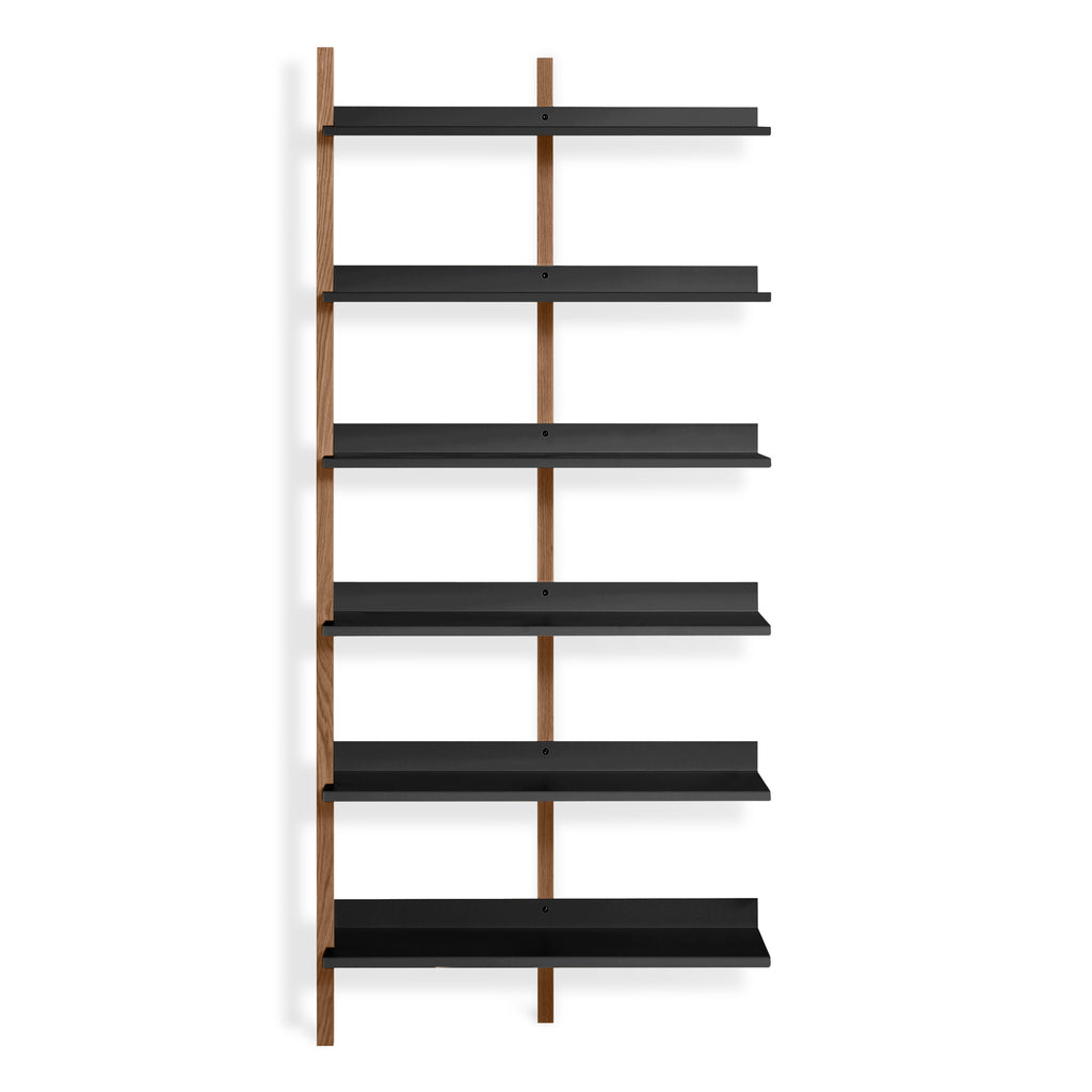 Be your own search engine. Browser is a wall-mounted shelving system designed to be a capable solo unit or added to (endlessly) as needed. With wood uprights and steel shelves, Browser can accommodate piles of vinyl, books galore, and multitudinous collections.