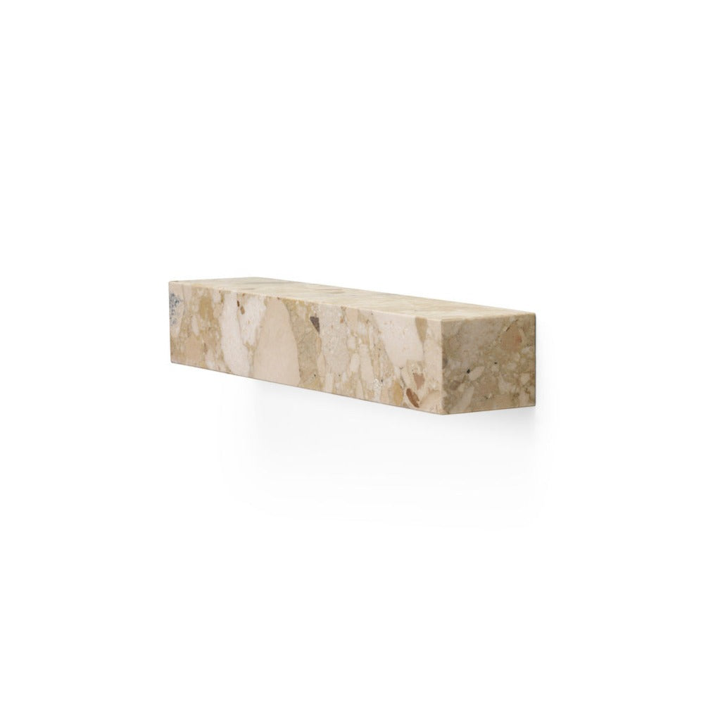 The minimalist profile of the Plinth Shelf is shaped from Grey Kendzo, a rich, brilliant white veined marble, carefully selected for its inherent beauty and light-reflecting qualities. Equal parts elegant and purposeful, the 60 cm long shelf can be attached horizontally to a wall for use as a display ledge or bookshelf, or vertically as a wall-mounted podium on which to showcase a favourite object.