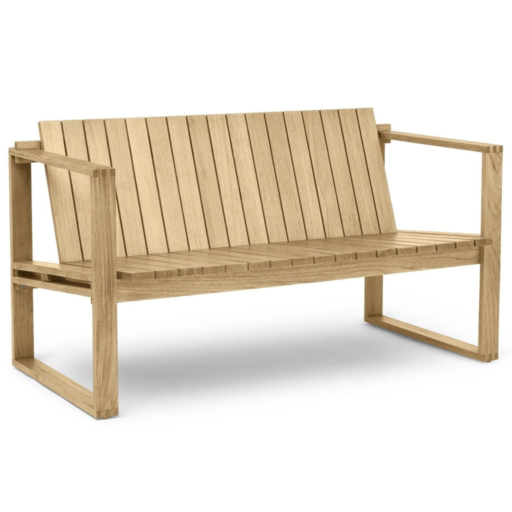 In 1959, Danish architect Bodil Kjær launched her Indoor-Outdoor Series, which included the supremely comfortable BK12 lounge sofa. Crafted from solid teak with a slatted seat and back, the sofa displays the same geometric sensibility that underpins the rest the collection. This quality is further enhanced by the armrests, legs and runners, which are morticed together to form sleek squares. Conceived as an architectural element, with proportions designed accordingly, the BK12 lounge sofa is suitable for indoor and outdoor use.