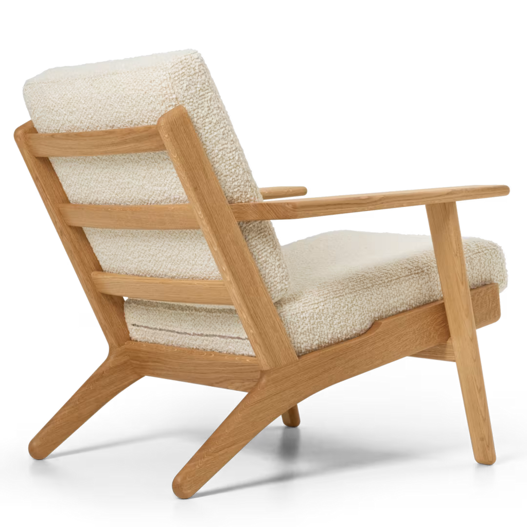 Designed in 1962, the CH290 Lounge Chair showcases classic Hans J. Wegner hallmarks in a stringent solid wood frame. Part of the CH290 Series, the chair demonstrates precise craftsmanship in dynamically angled legs, wide armrests and visible back slats. An upholstered seat and backrest in fabrics or leather give the lounge chair a relaxed expression, softening instantly recognizable Wegner characteristics with a relaxed style.