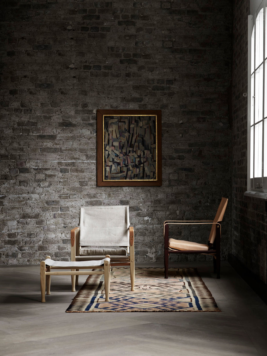 The KK97170 Safari Stool was designed by Kaare Klint’s son, Esben, after the death of his father. Easily assembled without tools, it is crafted to match the Safari Chair - one of the world’s first build-it-yourself furniture items. While offering a gentle place to rest one’s feet, it is also suited for a stylish life on the move.