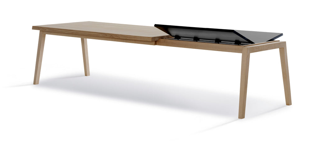 Perhaps most importantly, the Extend Table simplifies table extension a great deal, with a cleverly hidden foldout system providing easy access to built-in extension leaves in a bold, modern black finish. The Extend Table’s beautiful design thus ensures maximum ease and flexibility for all kinds of spaces and different functionalities.