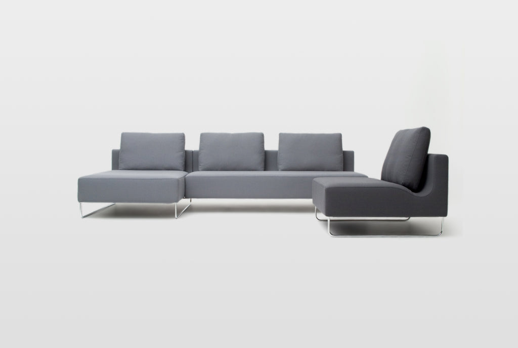The Canyon family consist of various sizes of single-arm and armless pieces that can be combined to make an almost infinite number of configurations. Steel under-frames are made with novel construction techniques and allow one piece to be suspended on the other for a cleaner appearance. Covers are removable for easy cleaning or replacement.