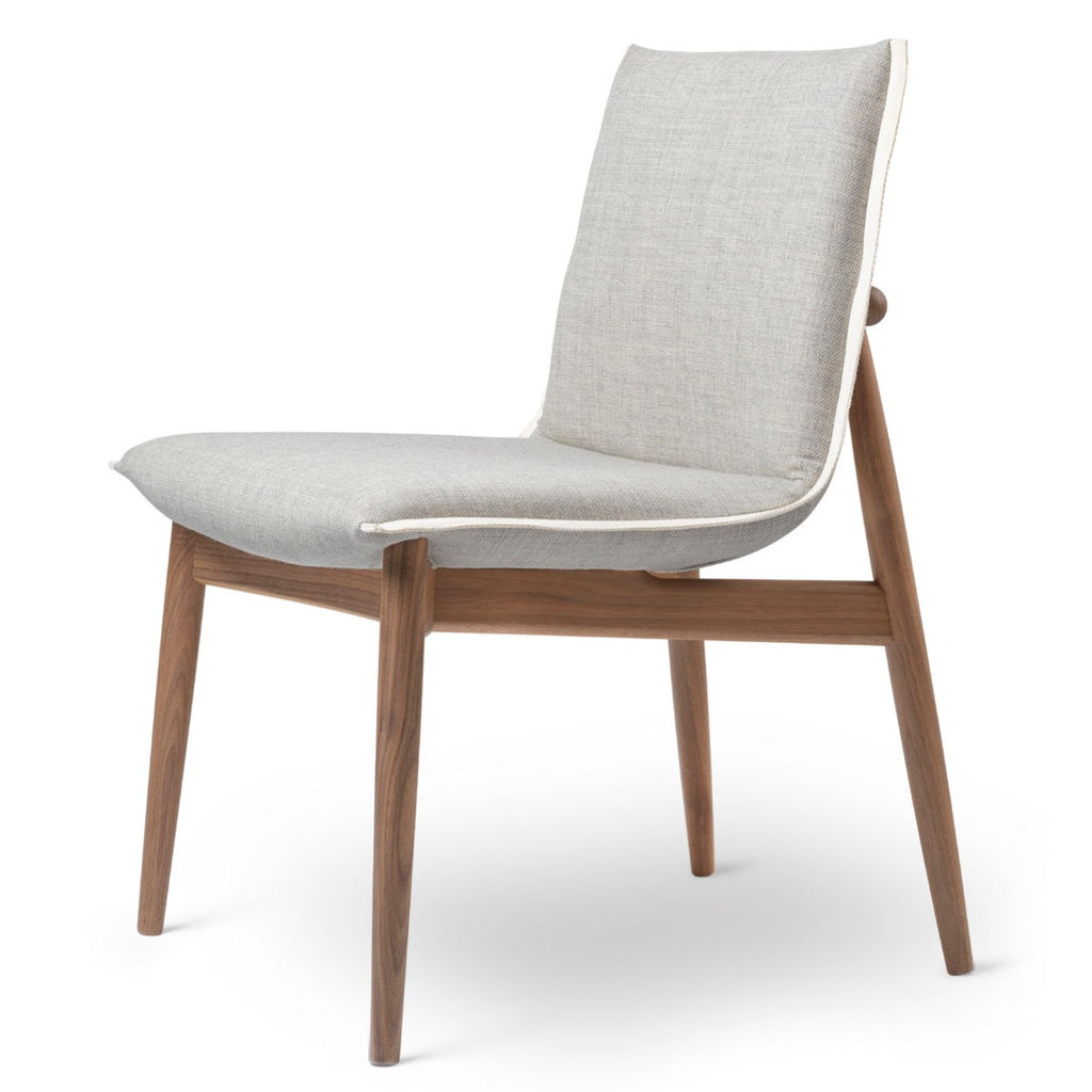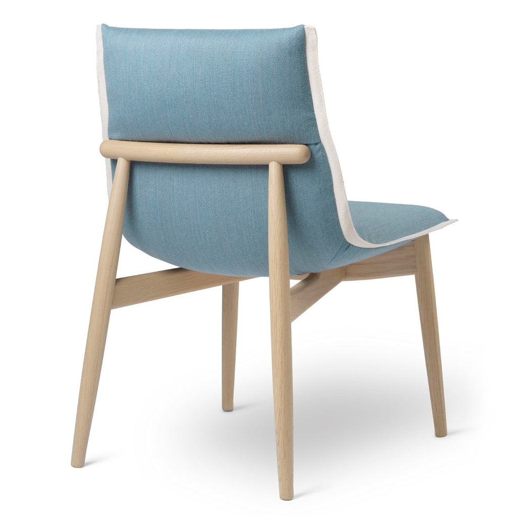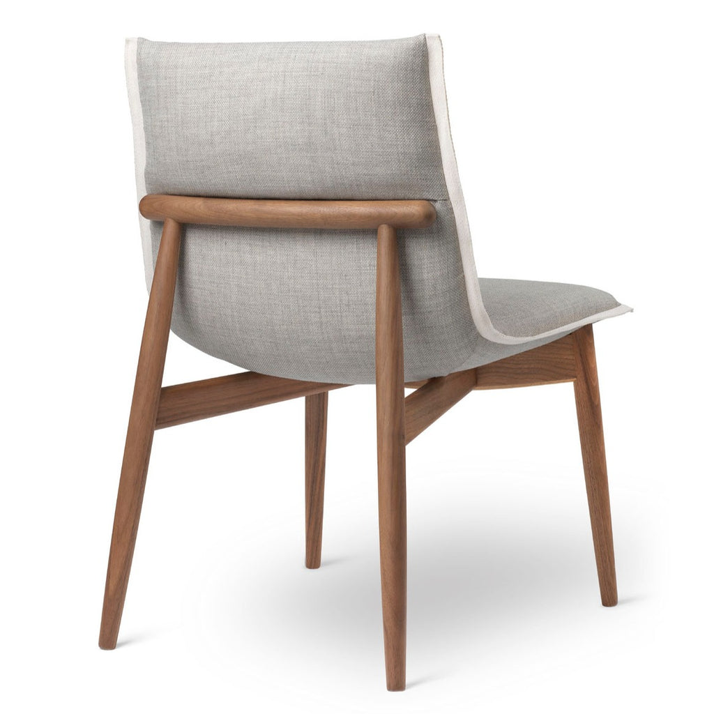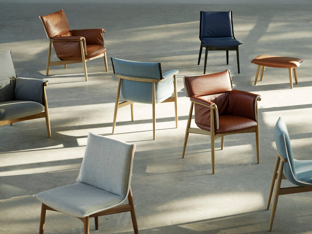 The Embrace Chair is a 2019 addition to the Embrace Series by Austrian design trio EOOS. Visually light in its expression, the chair has no armrests and will take up less space, fitting with any table. The design allows for great freedom of movement—a quality that enables users to communicate and interact freely. The upholstery is folded in two dimensions and the relaxed air of the upholstery contrasts the perfectly shaped wooden frame. It is a testimony to the unity between the craftsmanship and heritage of Carl Hansen & Søn and the innovative design approach of EOOS.