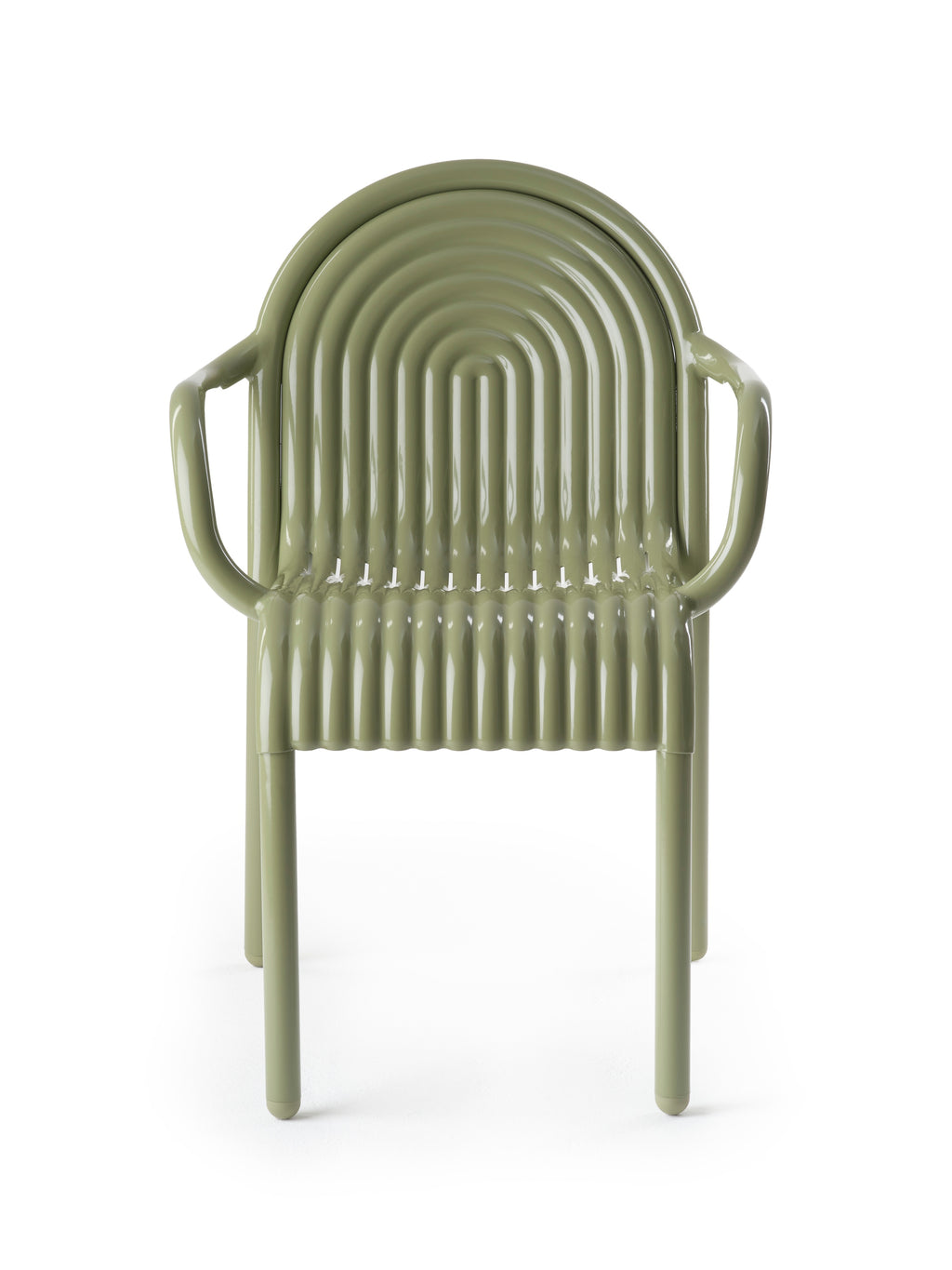 Discover the GROOVE Arm Chair, part of Tom Dixon's first outdoor collection. Inspired by the 2021 HYDRO aluminium chair, the GROOVE Arm Chair features distinctive art deco style raised ridges and is made from premium aluminium. The GROOVE Arm Chair utilises cutting-edge manufacturing techniques for superior durability and features a high-quality powder-coated finish, ensuring suitability for outdoor use and is both solvent and VOC-free.