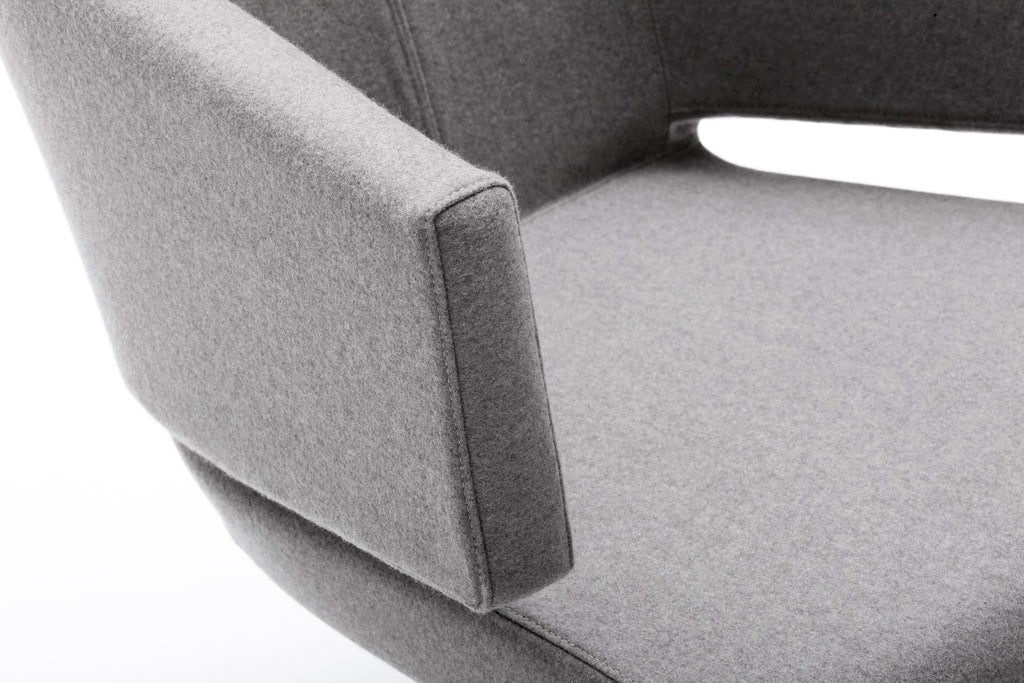Lotus is a multi-purpose lounge chair equally appropriate for home or commercial space. The result of a considered design process and advanced production techniques, its small scale hides a surprisingly spacious and comfortable seat that allows for numerous positions including side sitting.