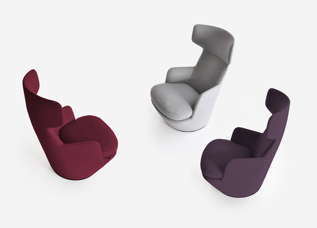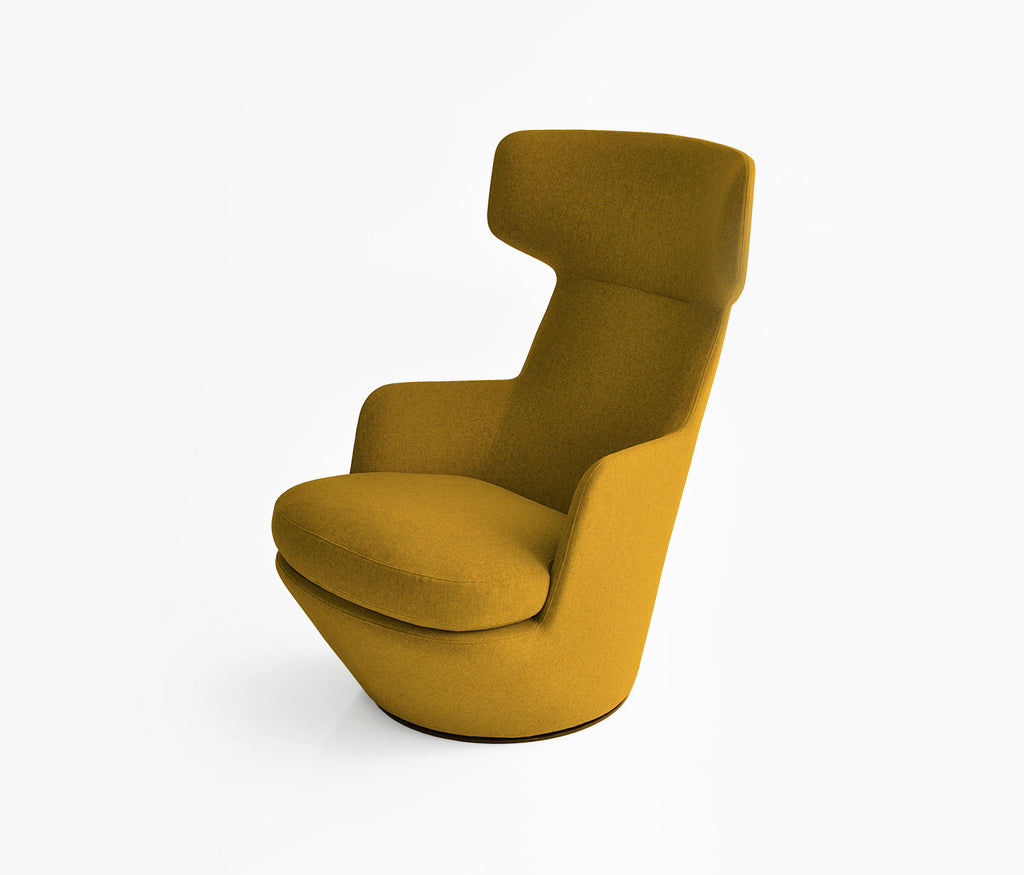 My Turn is a high wingback swivel lounge chair with a metal base that rotates smoothly through 360º. This inviting chair is a contemporary take on the traditional wingback - relaxing, and discreet. The combination of an internal steel frame, injection molded cold foam and a soft down seat make for an inviting and comfortable chair with a tailored appearance.