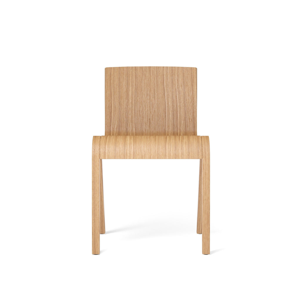The result of a study of the possibilities of form-pressing techniques, Ready Chair, created for Audo by Matias Møllenbach and Nick Rasmussen, takes its cues from classic free-swing chair designs, its cantilevered seat and backrest appearing as if suspended on air. Available in FSC™-certified oak veneer, it comes with a natural or red stained oak finish and with the option of an upholstered seat and back. Perfectly sized for use as a dining chair, its stackable design and row-connecting feature make it equally suited to a multitude of other uses.
