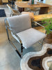 Meet Skald, a modern yet classic lounge chair perfectly situated for composing poetry. Made in Italy with luxe fabrics paired with polished chrome frame creates an inviting silhouette for an architectural piece.