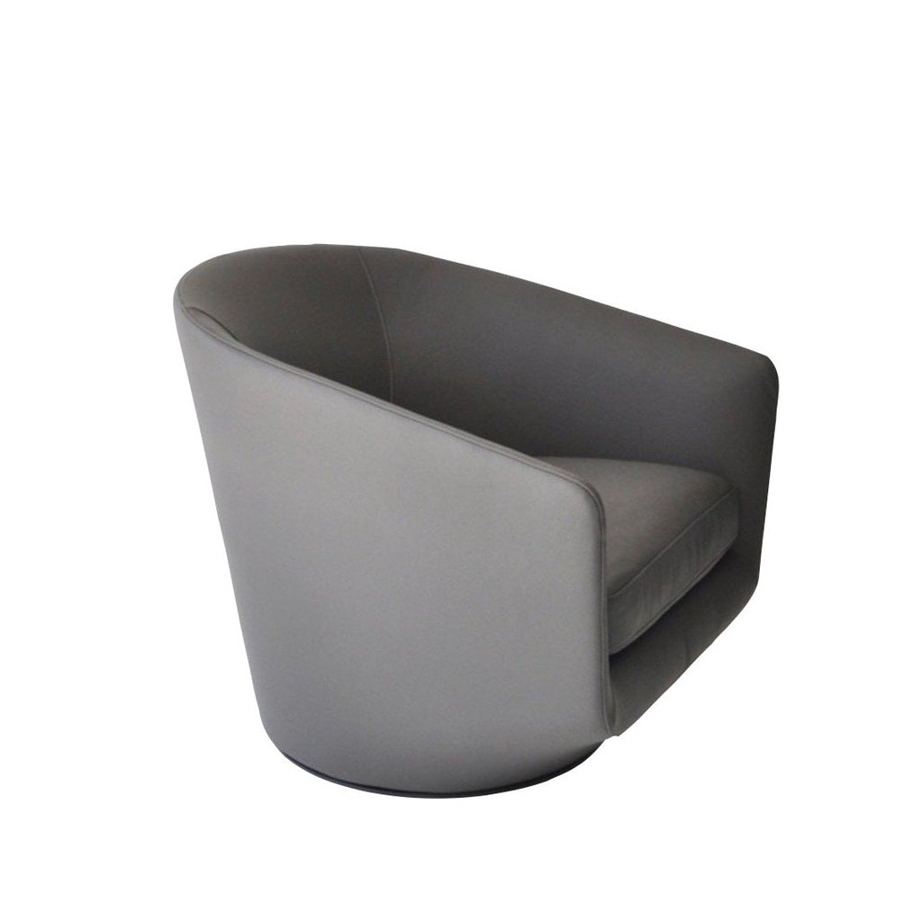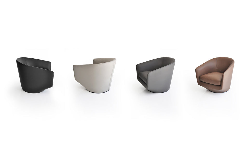 U Turns sits upon a discrete circular metal base that rotates smoothly through 360º. An internal steel frame and injection molded foam create engineered comfort and a tailored appearance. Removable cover available.