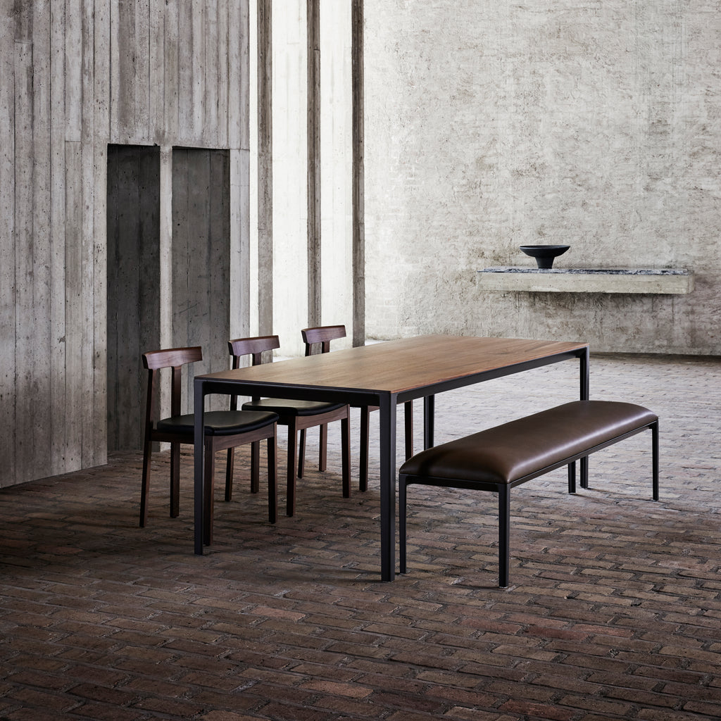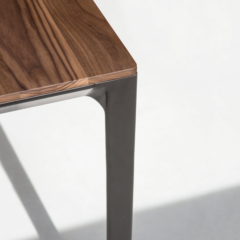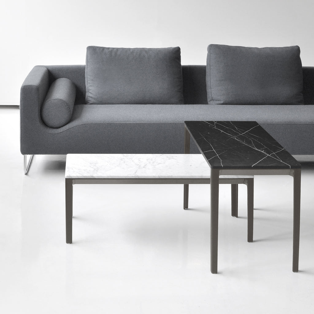 The tables offer a variety of solutions in size, and materials by using cast aluminium legs and aluminium rails to support tops in wood, marble and Polaris. The versatility takes the Ables anywhere in the home - dining, living, bedrooms, and eventually outdoors..