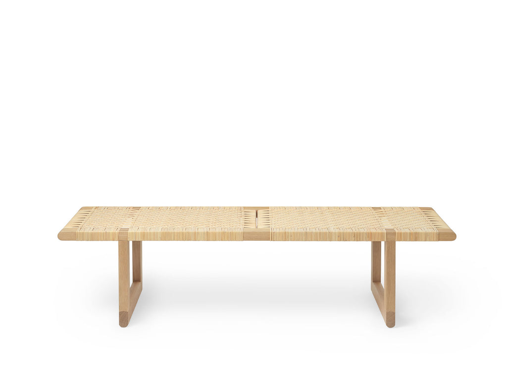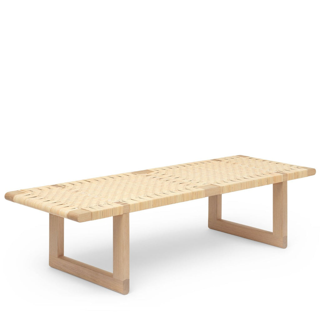 Versatile, timeless and carefully crafted, the BM0488 Table Bench was originally created to complement the BM0865 Daybed. The multi-functional piece forms part of Mogensen’s ‘building furniture’ concept – enduring furniture that could be added to and adapted over time in response to changing needs and living situations. Equally suited to use as a bench in an entrance hall or at the end of a bed as it is as a coffee table or side table, the independent piece exudes wellbeing wherever it is placed. The BM0488 is crafted in solid oak, where the dense and flawless inner portion of the trunks known as heartwood is skilfully shaped with traditional cabinetry joints and rounded edges that repeat in the legs and rails. Topped with a double–woven surface, the durable and decorative design will look beautiful for generations to come.
