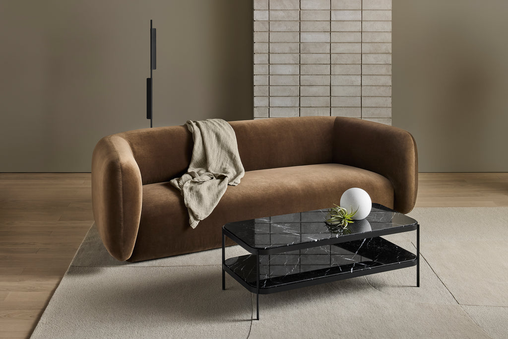 A seductive duo in any space, Marquina Black marble and black powder-coated steel bring low-key luxe and high-key function everywhere they go. For those who like to be fancy, but not too fancy. Gang with the Comehither console or side table to create a landscape of function.