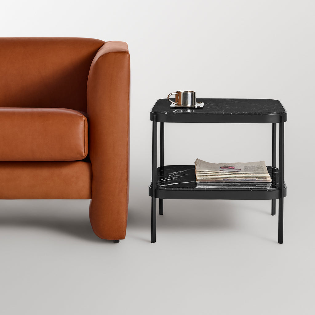A seductive duo in any space, Marquina Black marble and black powder-coated steel bring low-key luxe and high-key function everywhere they go. For those who like to be fancy, but not too fancy. Gang with the Comehither coffee or console table to create a landscape of function.