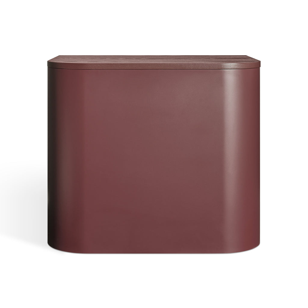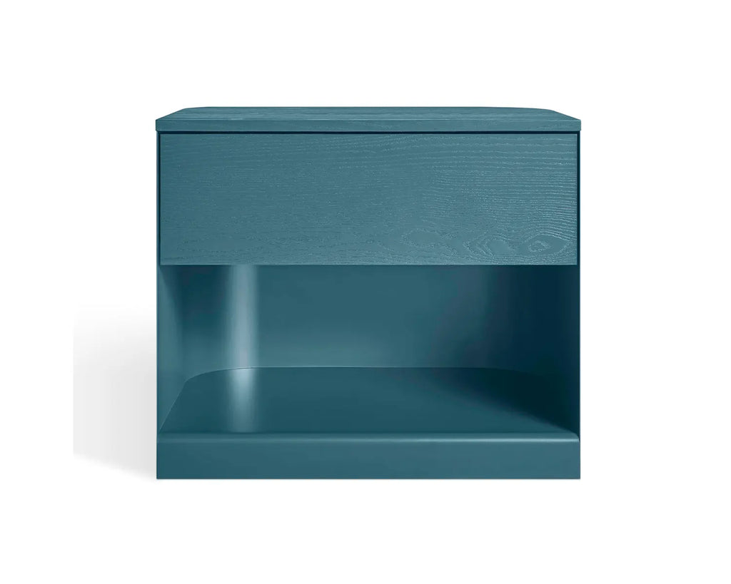 For those who like to dilly, but also dally. A friendly powder-coated steel form packs a punch and a plethora of storage. Inconspicuous, oversized drawer keeps your lollygagging essentials neatly tucked away yet close at hand.