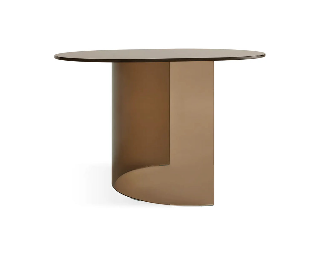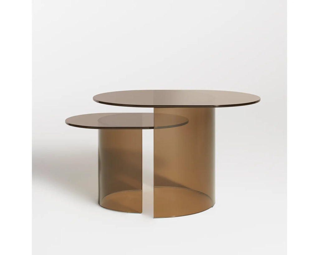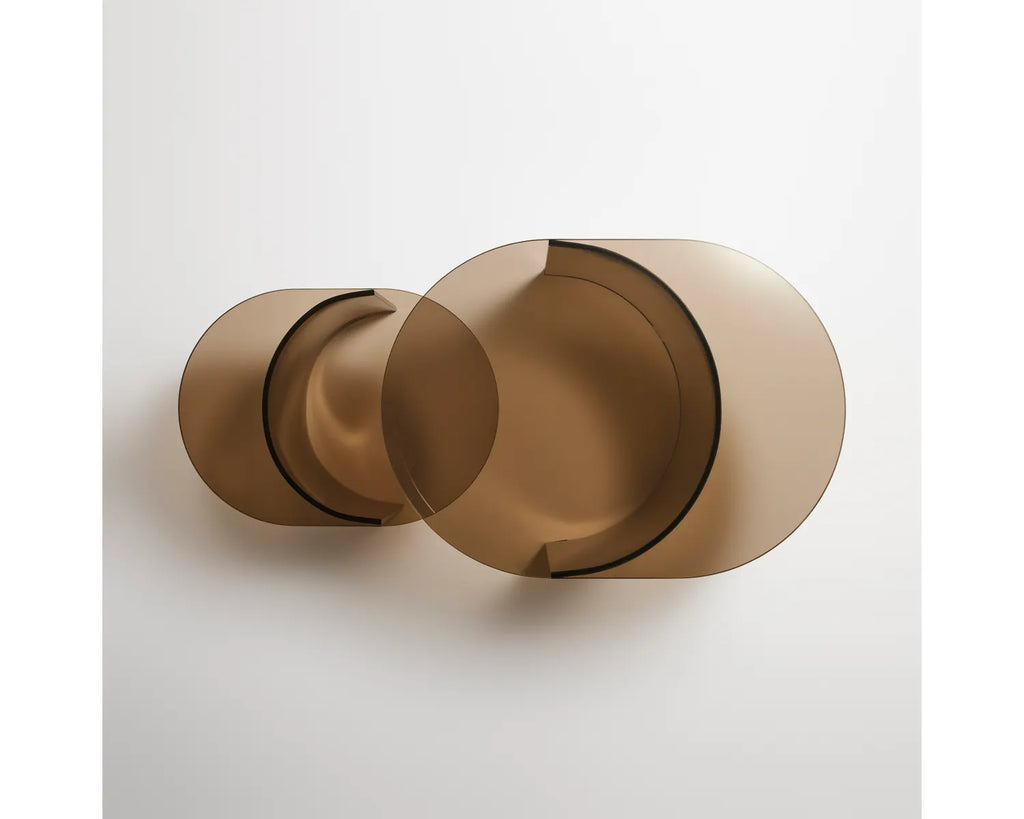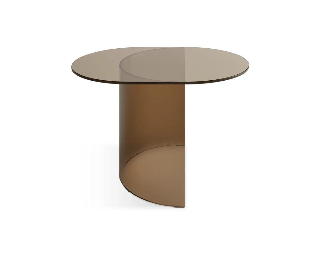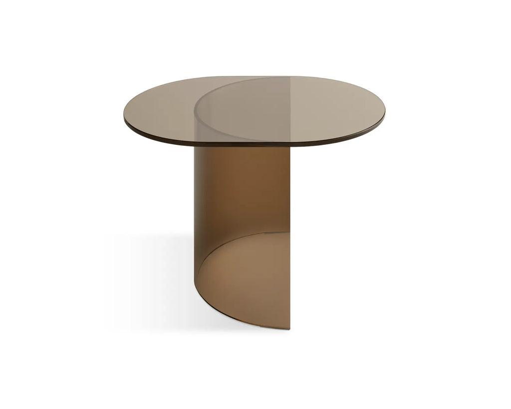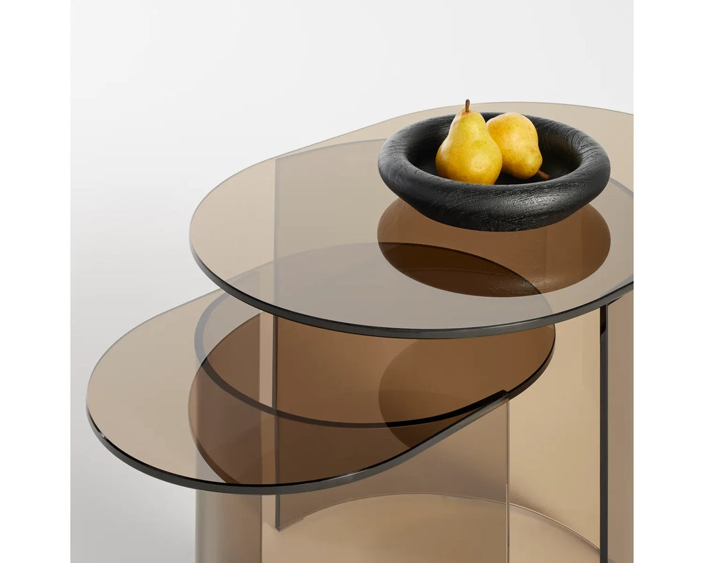 Sculptural side table that’s moody and a little bit attitude-y. Bronze tempered glass gracefully arches to support a cantilevered glass top. Ample curves and a beveled edge keep the silhouette soft and dynamic. Nest together to create a visually stunning layered effect and ample overhead appreciation.