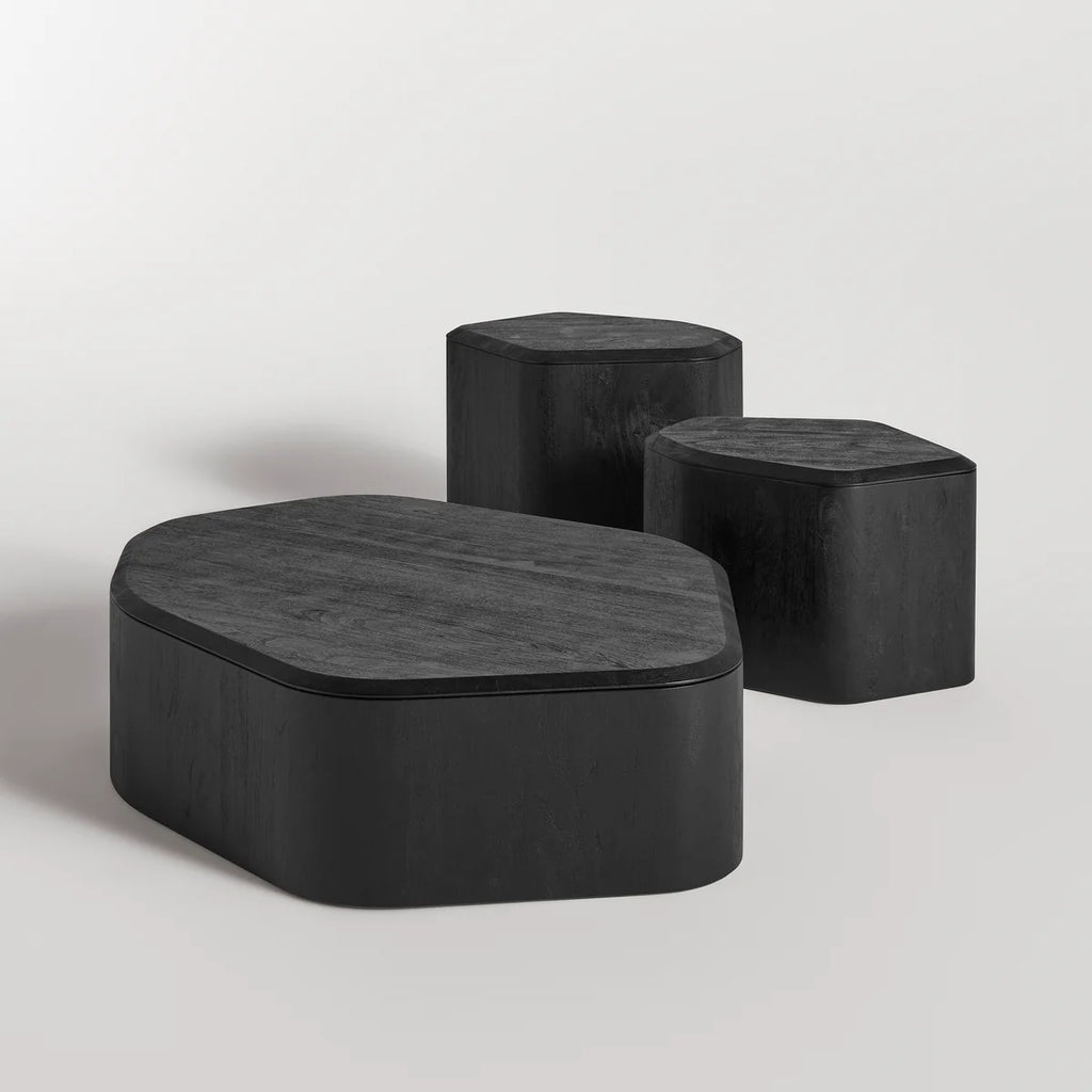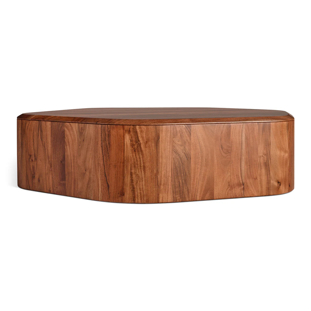 What you see is what you get—and what you get is solid wood, sculptural proportions, and a gently beveled edge that elevates the everyday. It’s all form, no fuss. Designed to stand alone or play well with the matching storage side tables.