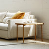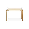 Bauhaus-inspired design gets a contemporary update with the Manifold collection. Featuring elegant, clean-lined tables that can stand alone or nest together, the well-considered silhouettes optimize space with innovative design compatibility. The square coffee table serves as an ideal companion for sectionals or a grouping of armchairs, bringing people together for meaningful interaction. While the tabletop provides ample space to spread out, the slender metal legs contribute to an overall light, sleek aesthetic. Available in two combinations—Blonde Ash with Brass or Walnut with Pewter – each with the promise to elevate your space.