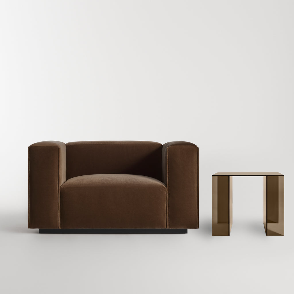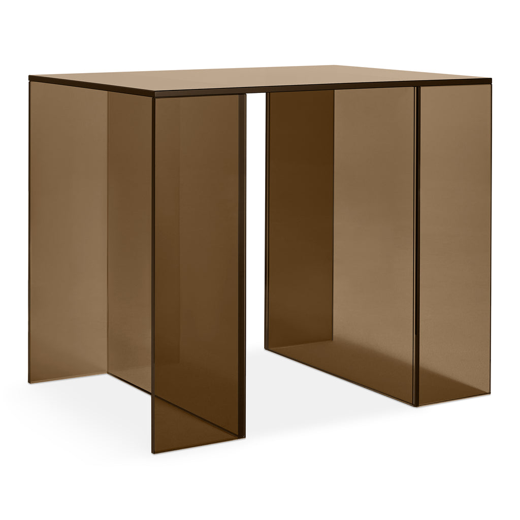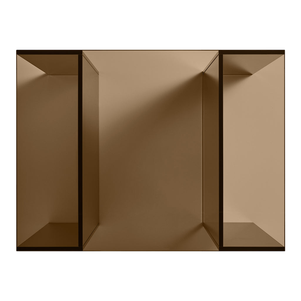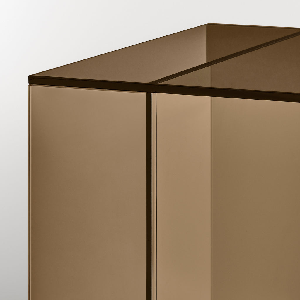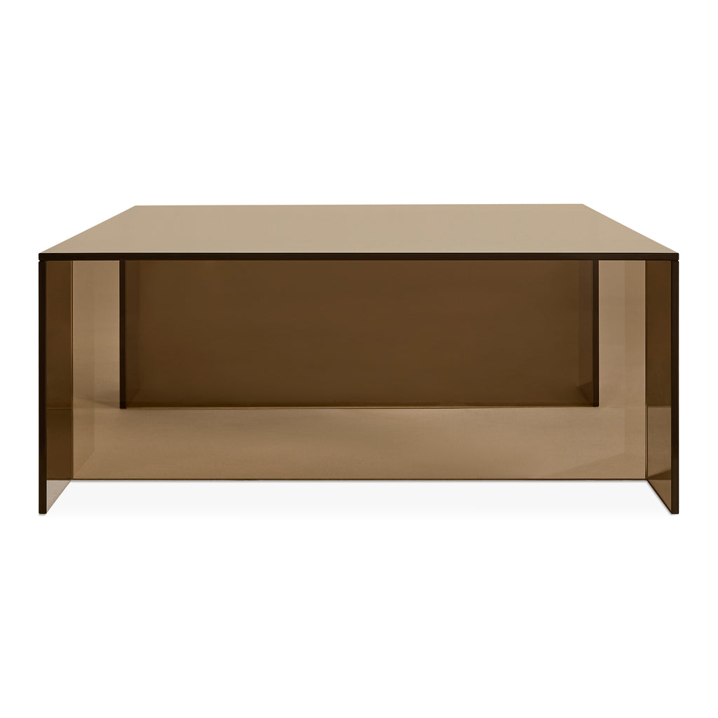 We set bronze tempered glass on bronze tempered glass to create a table with nothing to hide and a lot to say. Let it speak for itself, or use the vast swaths of surface and shelf-like apertures to accomodate your objets d’art and catalogue raisonnés.