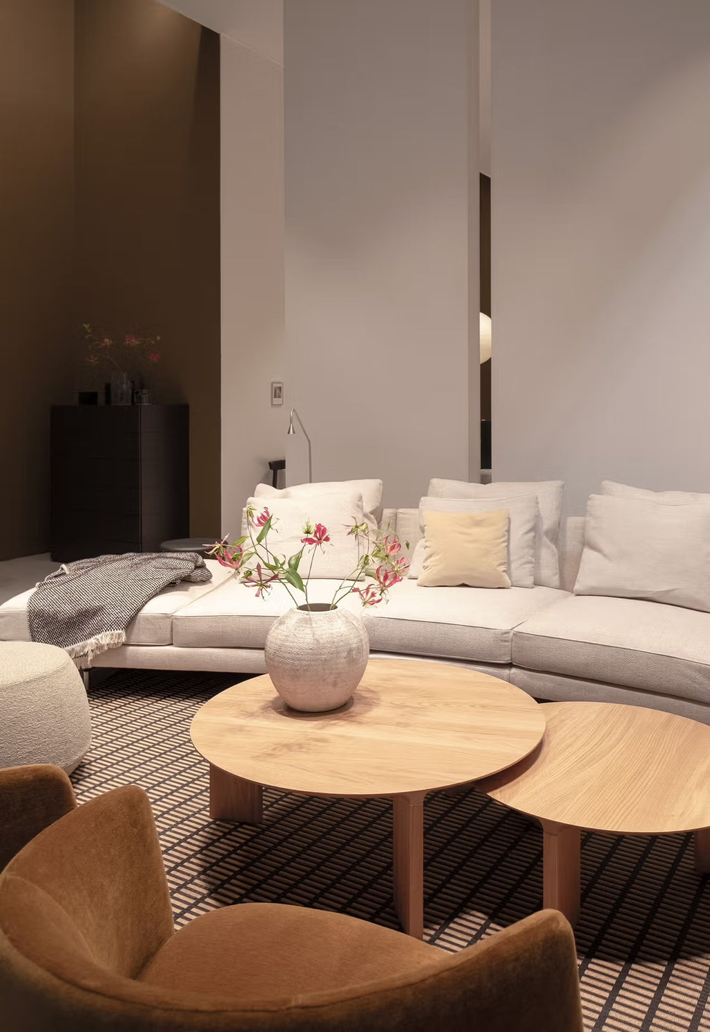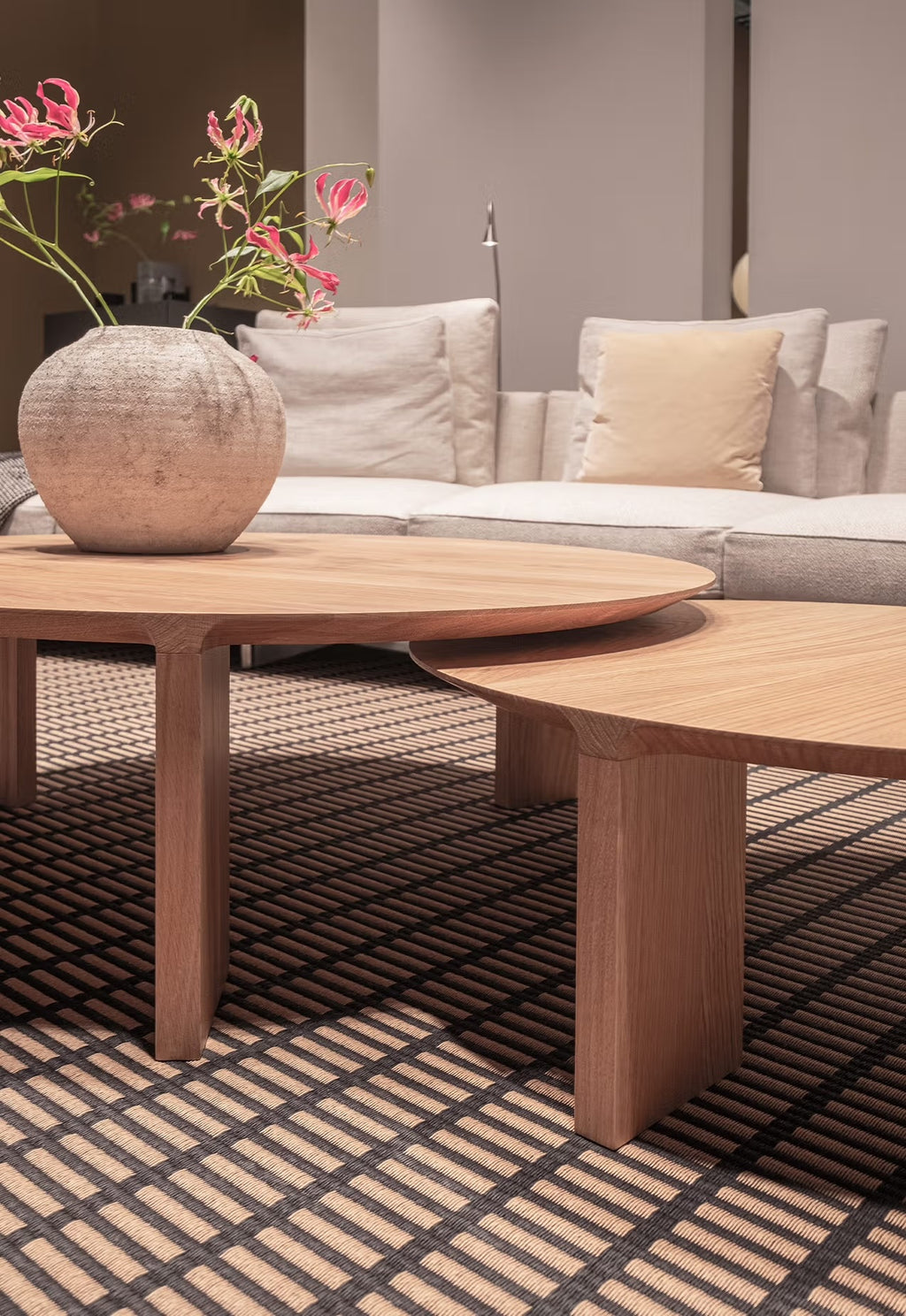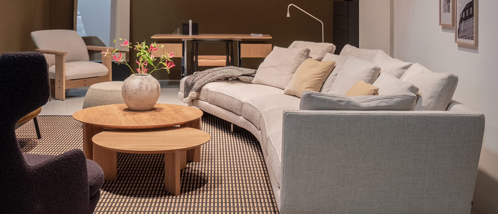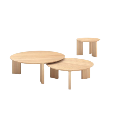 The round Radii Coffee able is a new offshoot of the popular Radii dining table and bench series. The coffee tables are crafted from solid Oak or Walnut with the signature beveled edge. They are available in three sizes and three heights so as to be able to nest together.
