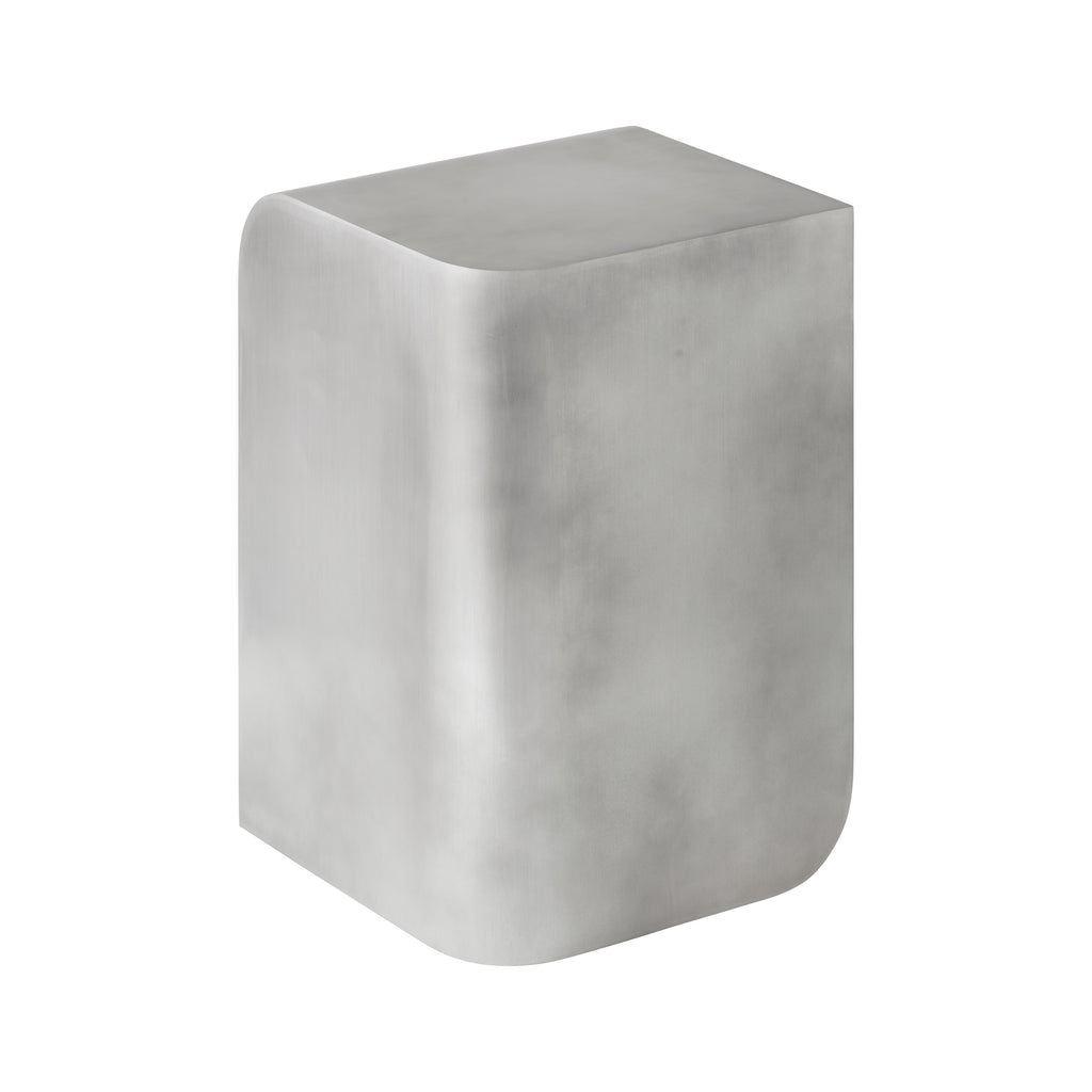 Polished and lacquered aluminium side table. Formed from bent aluminum, welded, and lacquered for a seamless and polished finish.