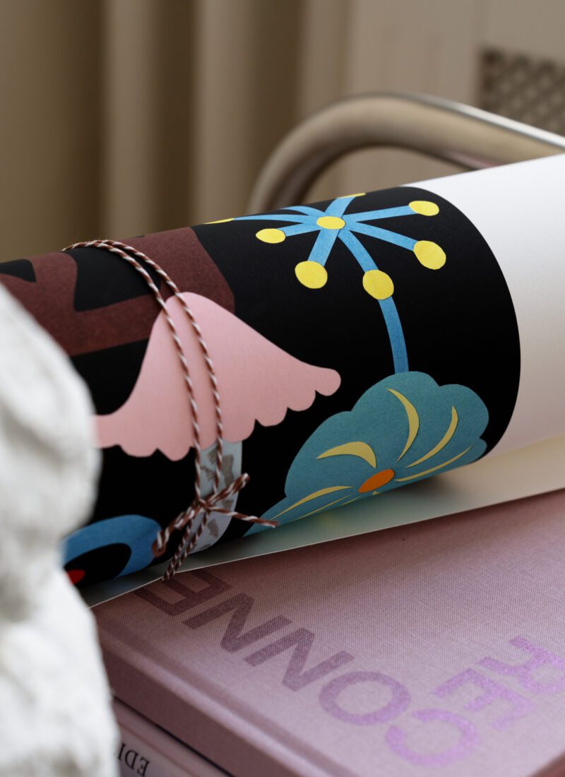 Art print is carefully wrapped in silk paper, packed and shipped in a protective cardboard tube.