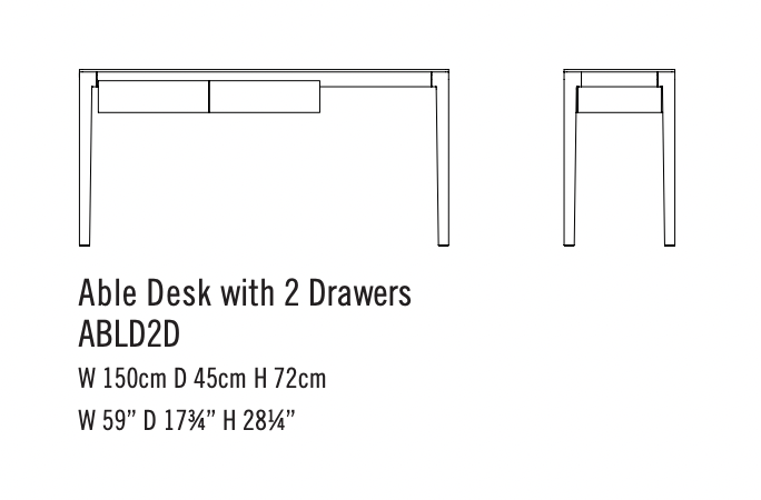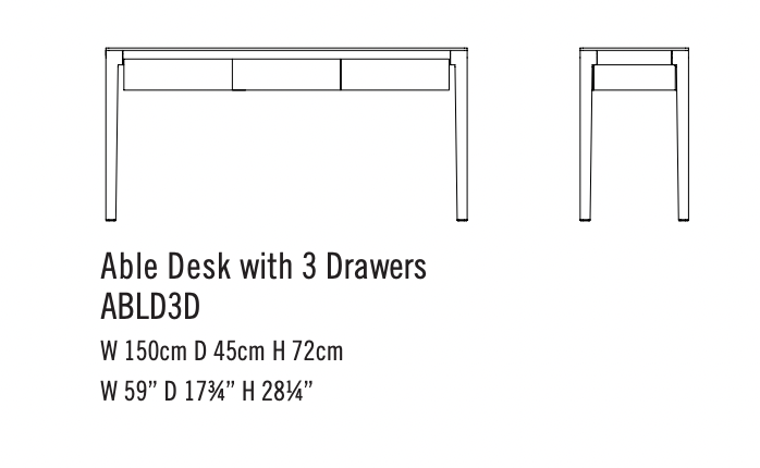 With the stalwart Able series table as base the addition of drawers expands the possibilities.