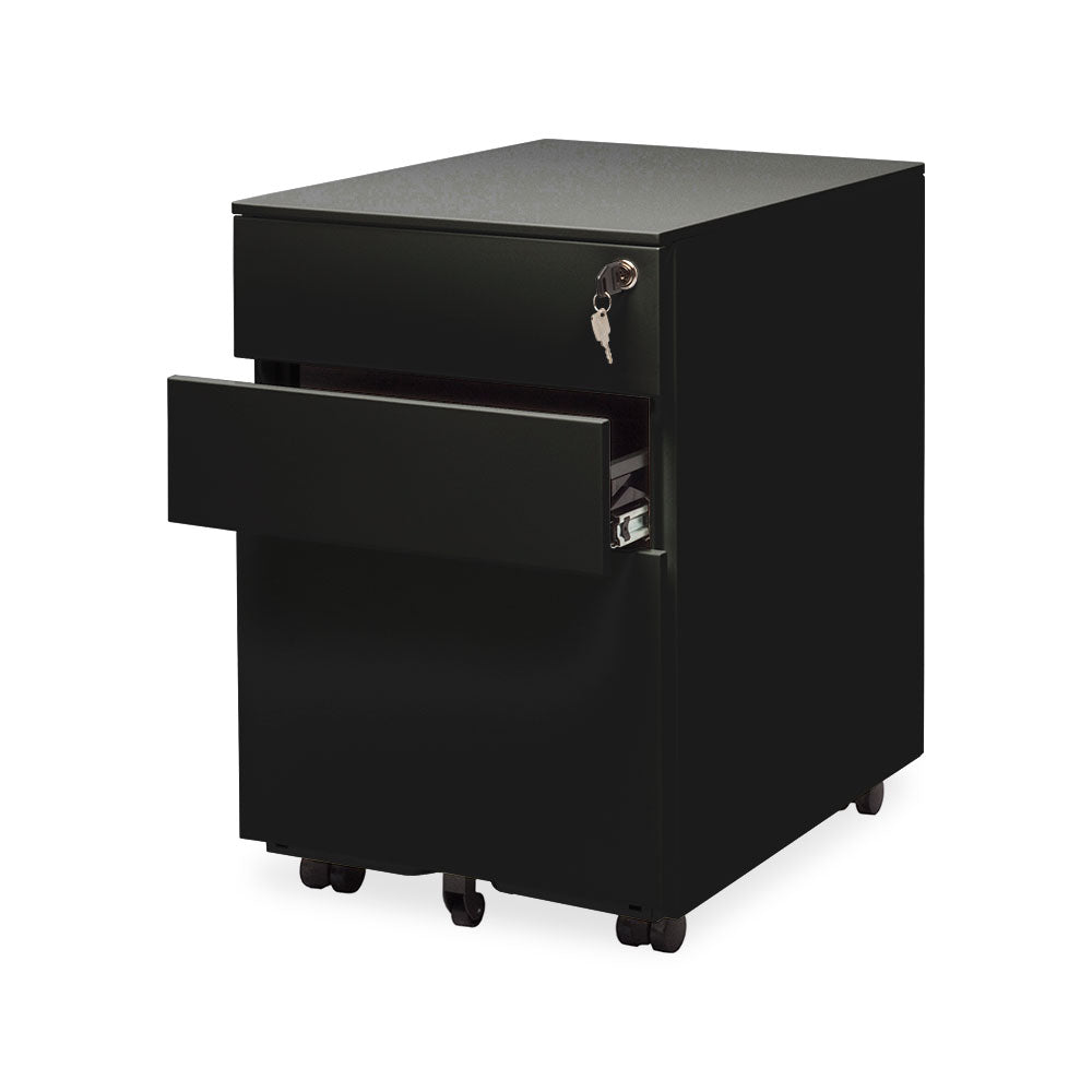 Straighten up. This modern file pedestal gets the job done. A clean, powder coated steel exterior allows this unit to sit quietly in any environment, residential or commercial. It’s so unassuming we named it “Filing Cabinet No. 1.” Locking file storage accommodates standard letter sized files. Oh…and it has wheels, too.