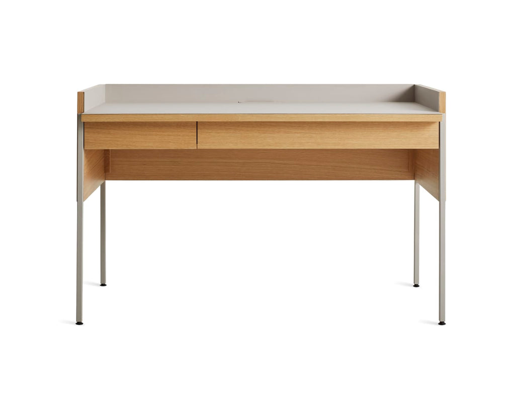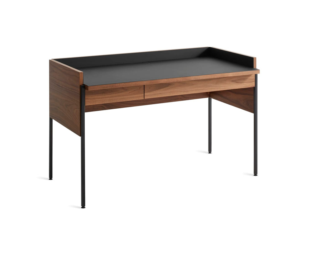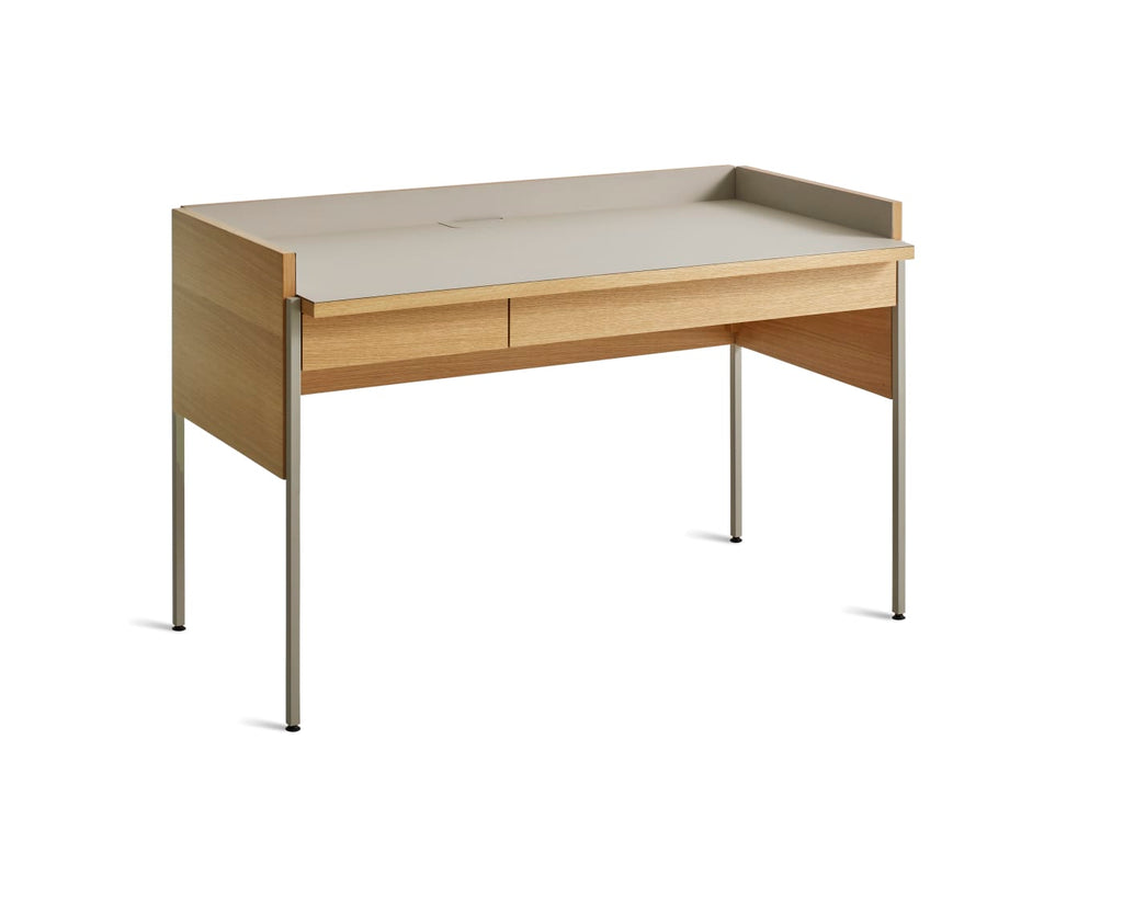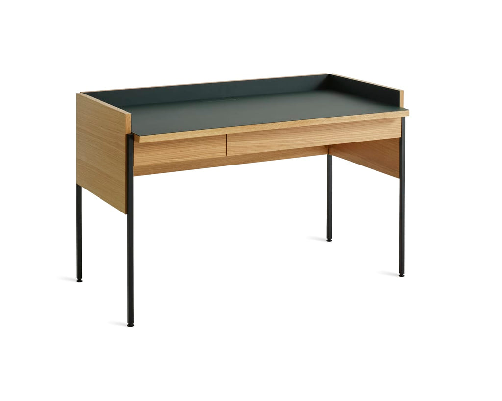 News flash! A solid desk makes the workday easy peasy. Tabloid is happy to check its sources. A wide wood frame cocoons a durable and delightful Forbo linoleum desktop. Color-coordinated steel legs give it all a boost. Hidden cord management and inconspicuous drawers team up to complete the job with brio. Yep, all checks out.