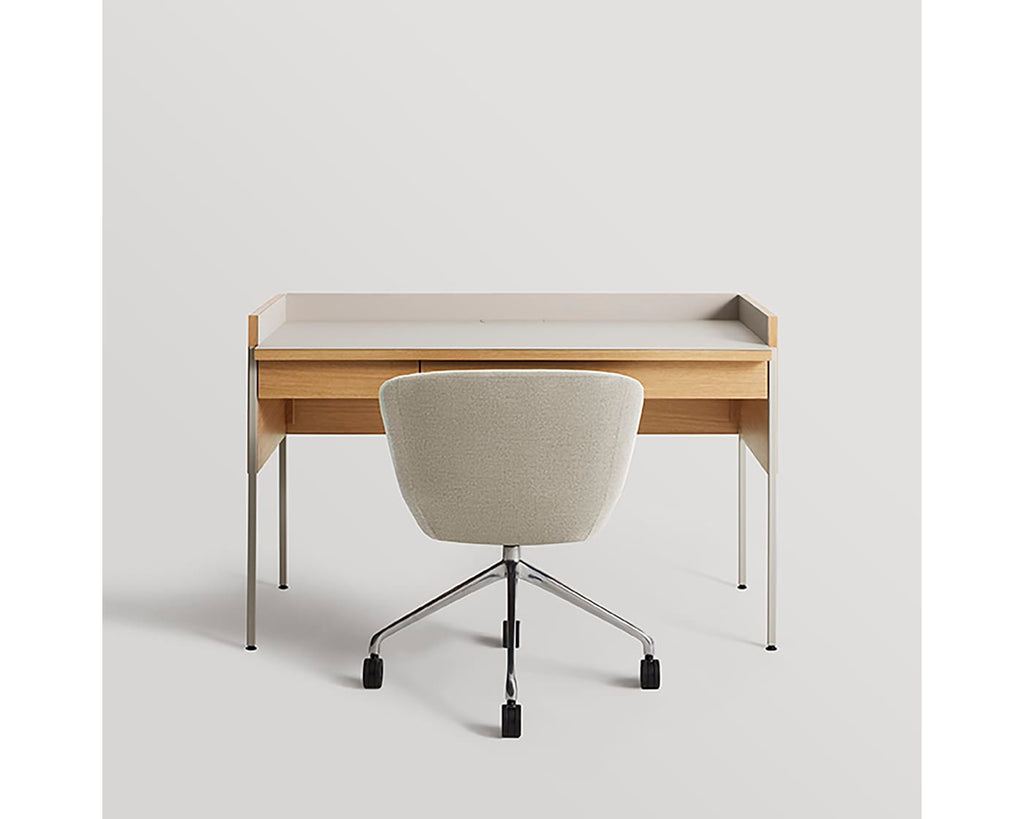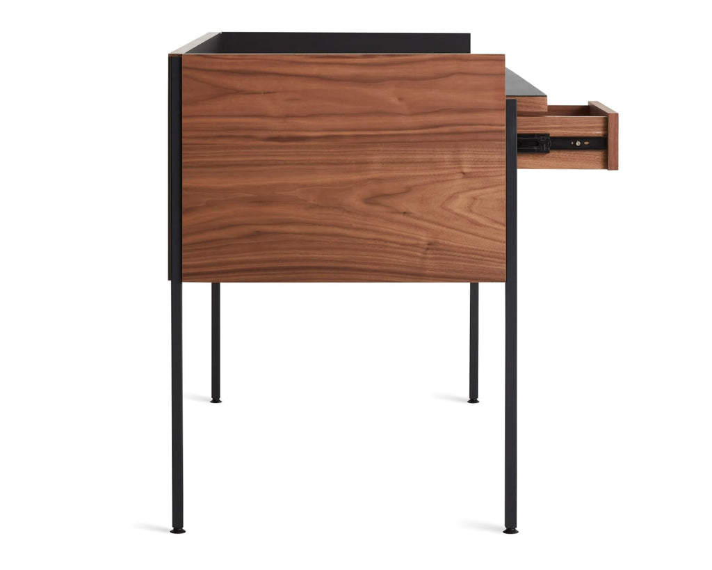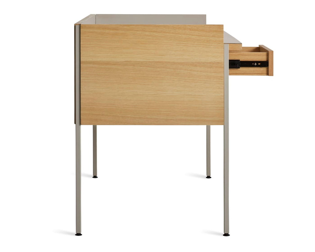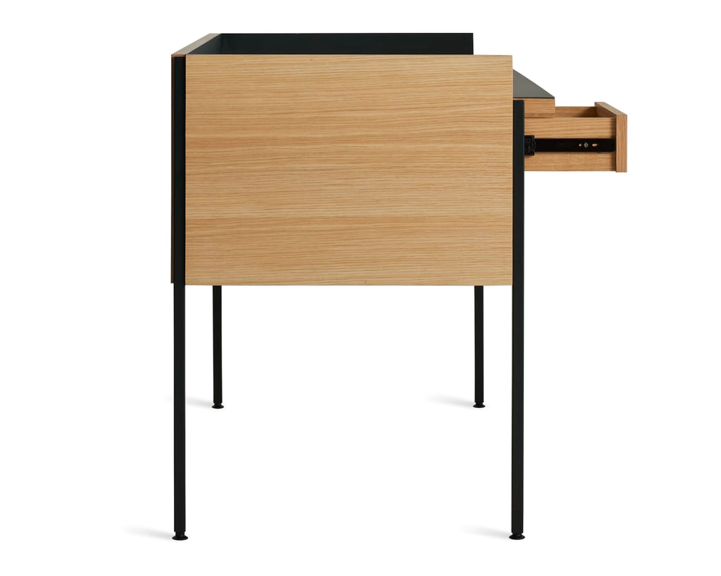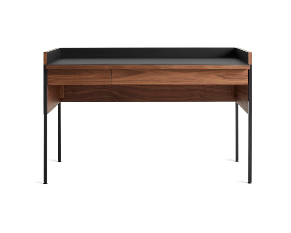 News flash! A solid desk makes the workday easy peasy. Tabloid is happy to check its sources. A wide wood frame cocoons a durable and delightful Forbo linoleum desktop. Color-coordinated steel legs give it all a boost. Hidden cord management and inconspicuous drawers team up to complete the job with brio. Yep, all checks out.