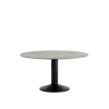 A natural focal point of the home, the Midst Table is a generous, round dining table where friends and family gather — and there is always room to squeeze in one more guest. Its refined silhouette is simple yet characteristic, enhanced by distinct detailing and contrasting materiality; matte solid oak or linoleum on a monolithic base made of spun steel with a durable high gloss finish.